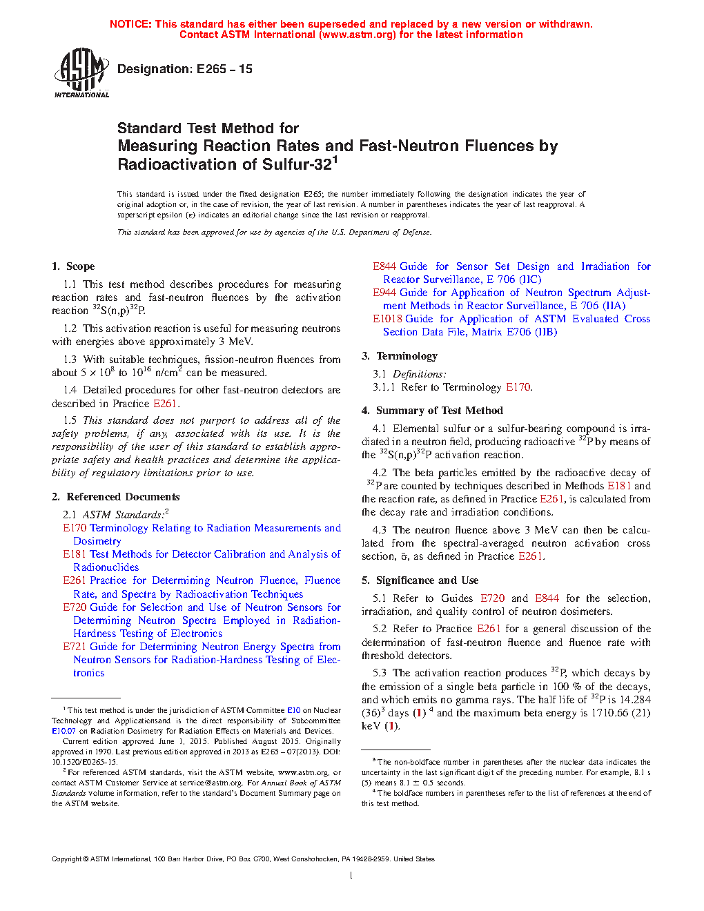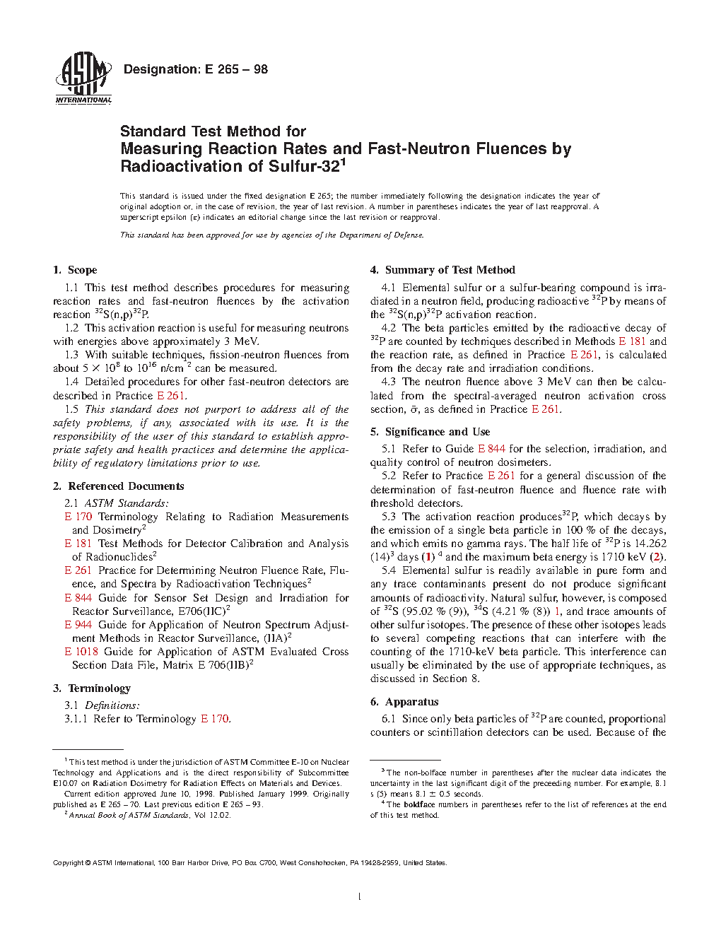 1.4 Detailed procedures for other fast-neutron detectors are described in Practice E261.