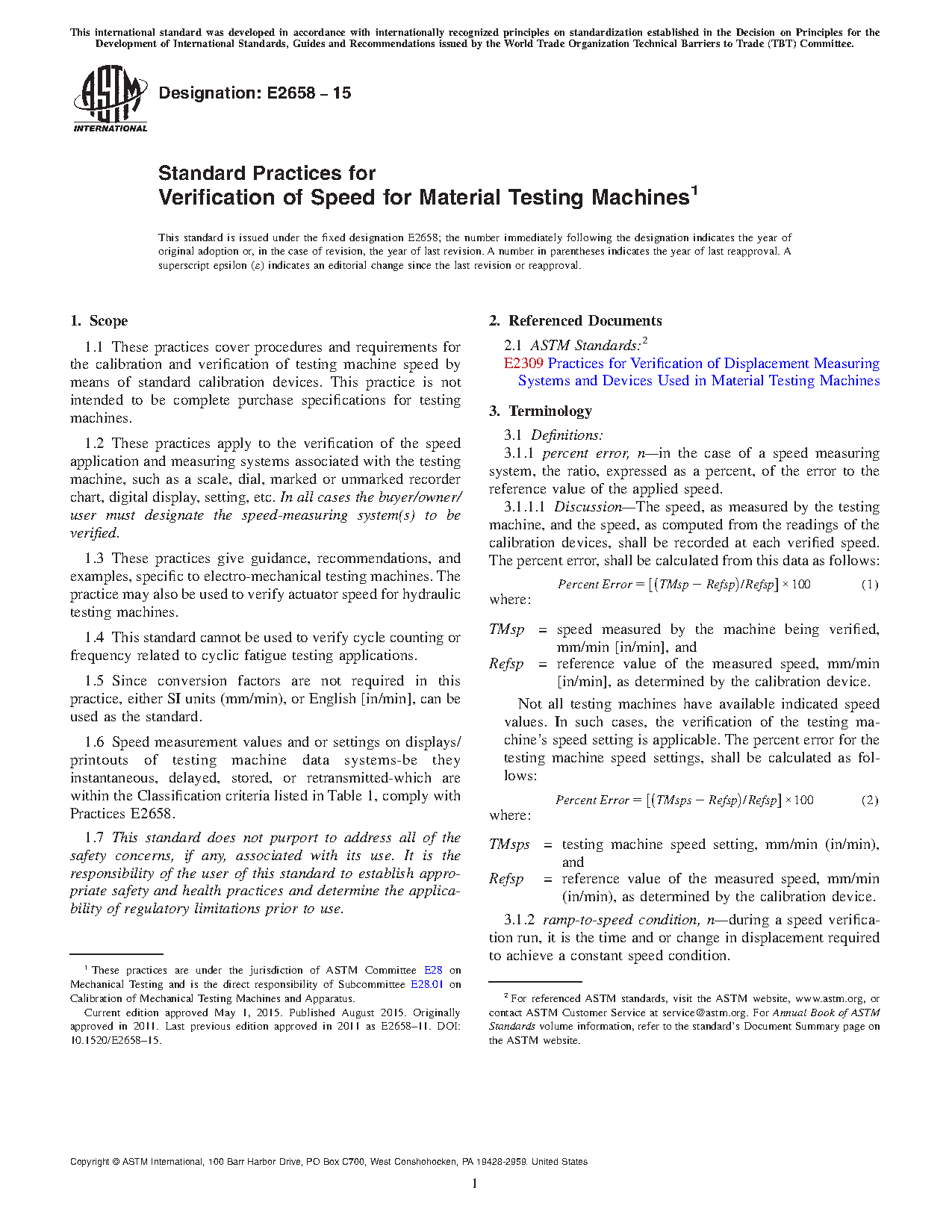 1.6 Speed measurement values and or settings on displays/printouts of testing machine data systems-be they instantaneous, delayed, stored, or retransmitted-which are within the Classification criteria listed in Table 1, comply with Practices E2658.