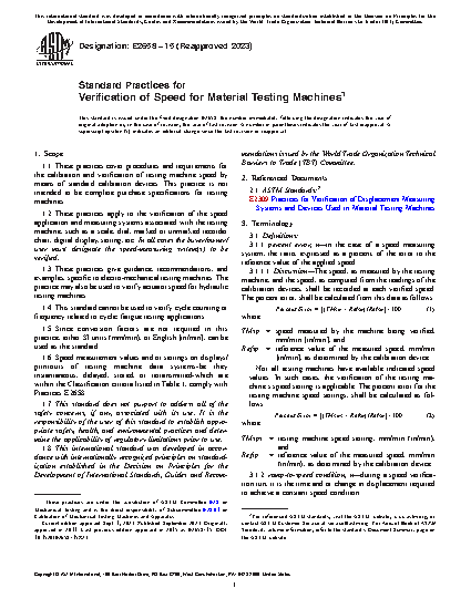 1.3 These practices give guidance, recommendations, and examples, specific to electro-mechanical testing machines. The practice may also be used to verify actuator speed for hydraulic testing machines.