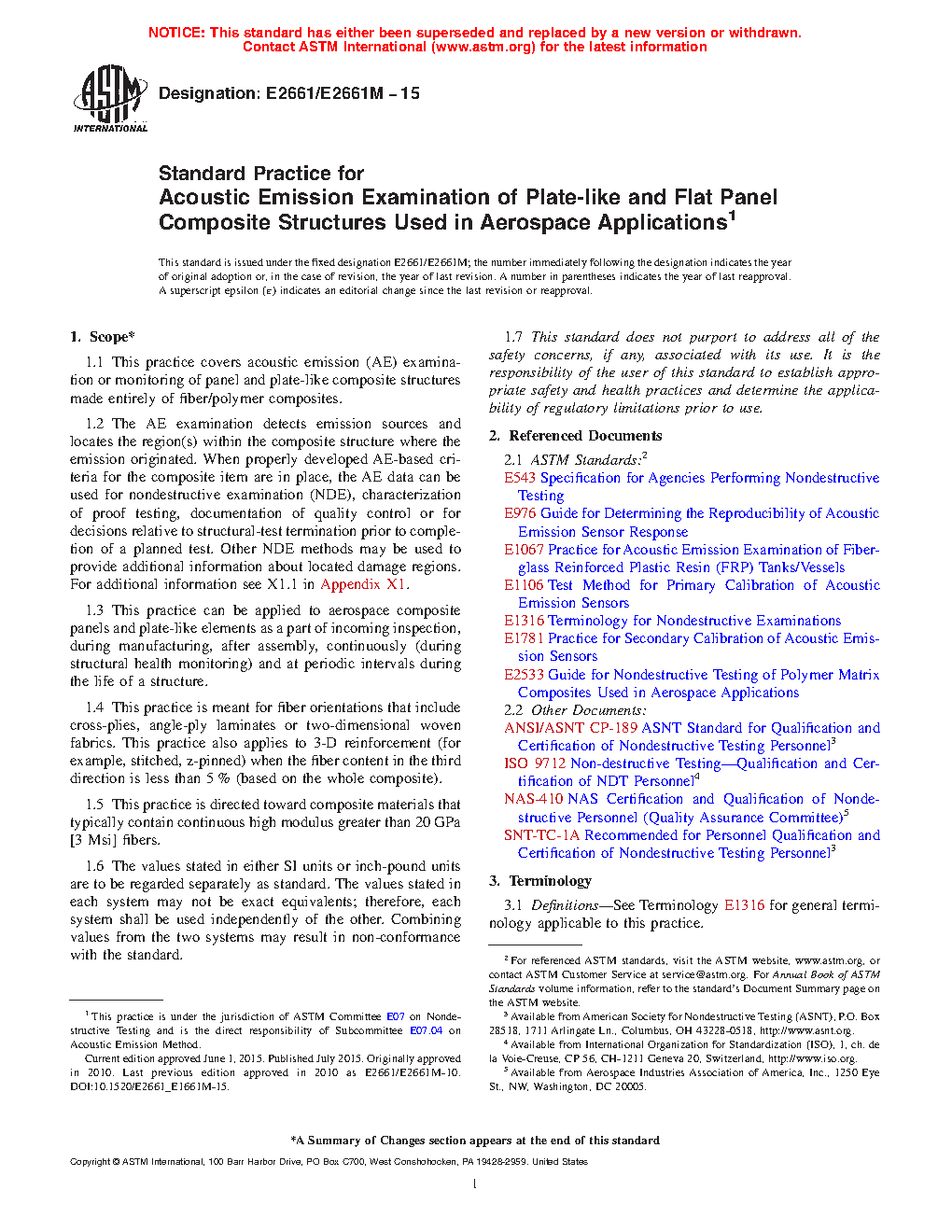 5.5 AE-detected flaws or damage concentrated in a certain region may be further characterized by other NDE techniques (for example, visual, ultrasonic, etc.) and may be repaired as appropriate. Repair procedure recommendations and the subsequent examination of the repair are outside the scope of this practice. For additional information see X1.5.