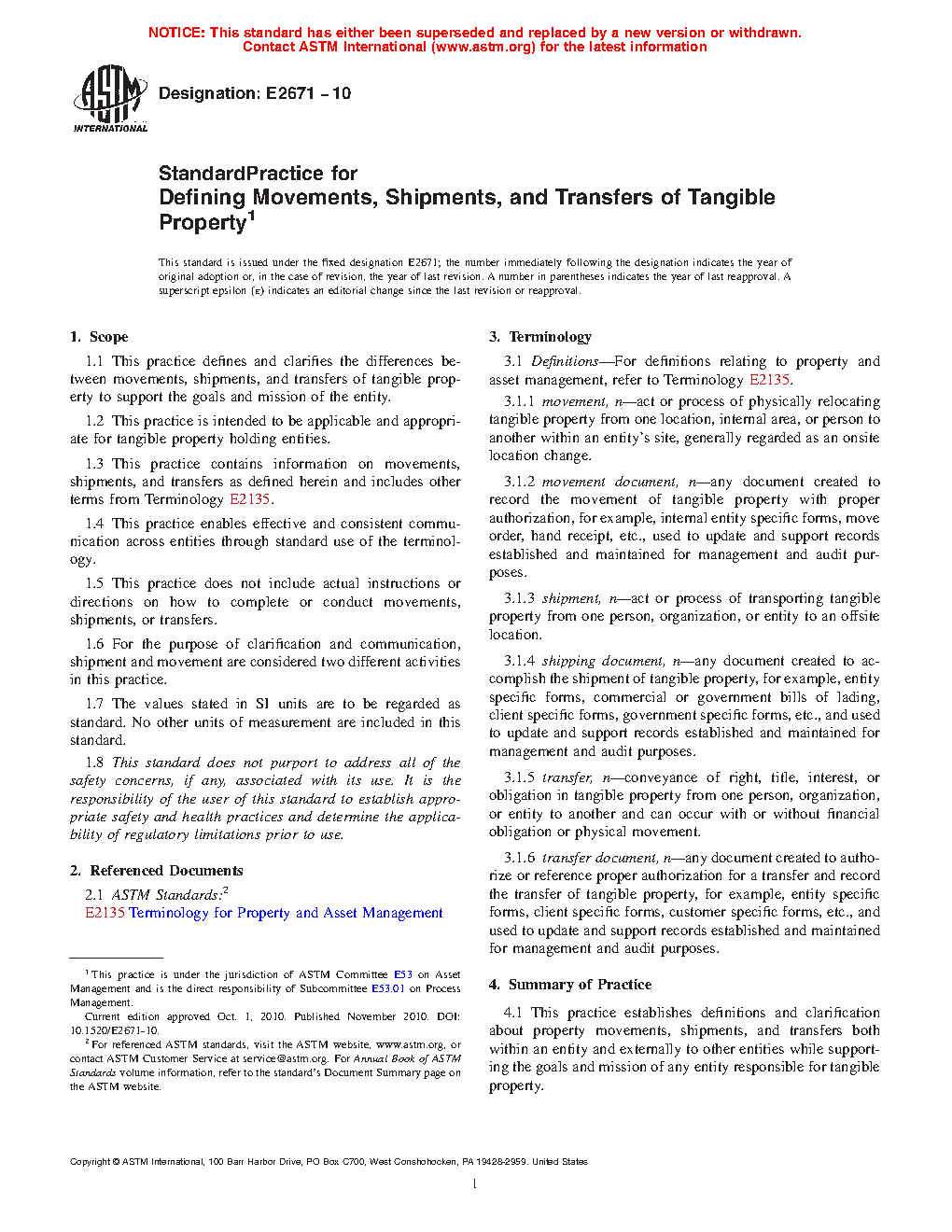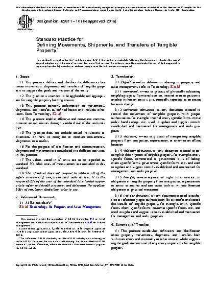 1.1 This practice defines and clarifies the differences between movements, shipments, and transfers of tangible property to support the goals and mission of the entity.