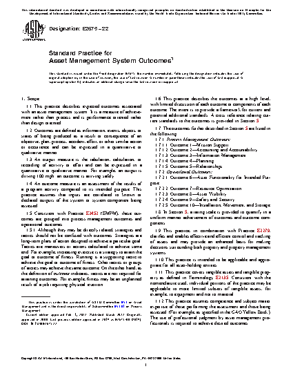 1.6 This practice describes the outcomes at a high level, with limited discussion of each outcome or components of each outcome. The intent is to provide a framework for current and potential additional standards. A cross reference relating current standards to the outcomes is provided in Section 5.