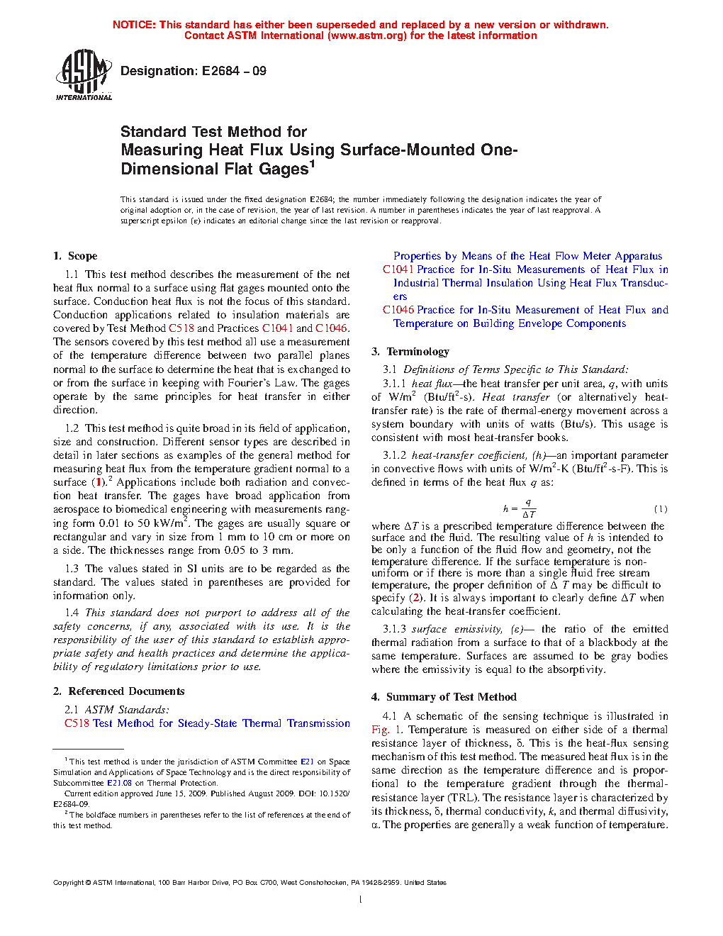 1.1 This test method describes the measurement of the net heat flux normal to a surface using flat gages mounted onto the surface. Conduction heat flux is not the focus of this standard. Conduction applications related to insulation materials are covered by Test Method C 518