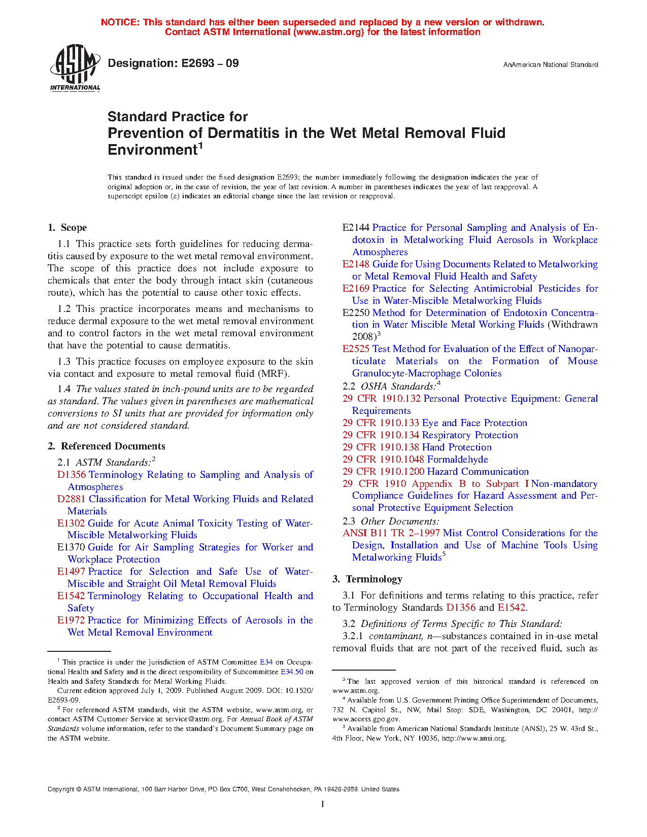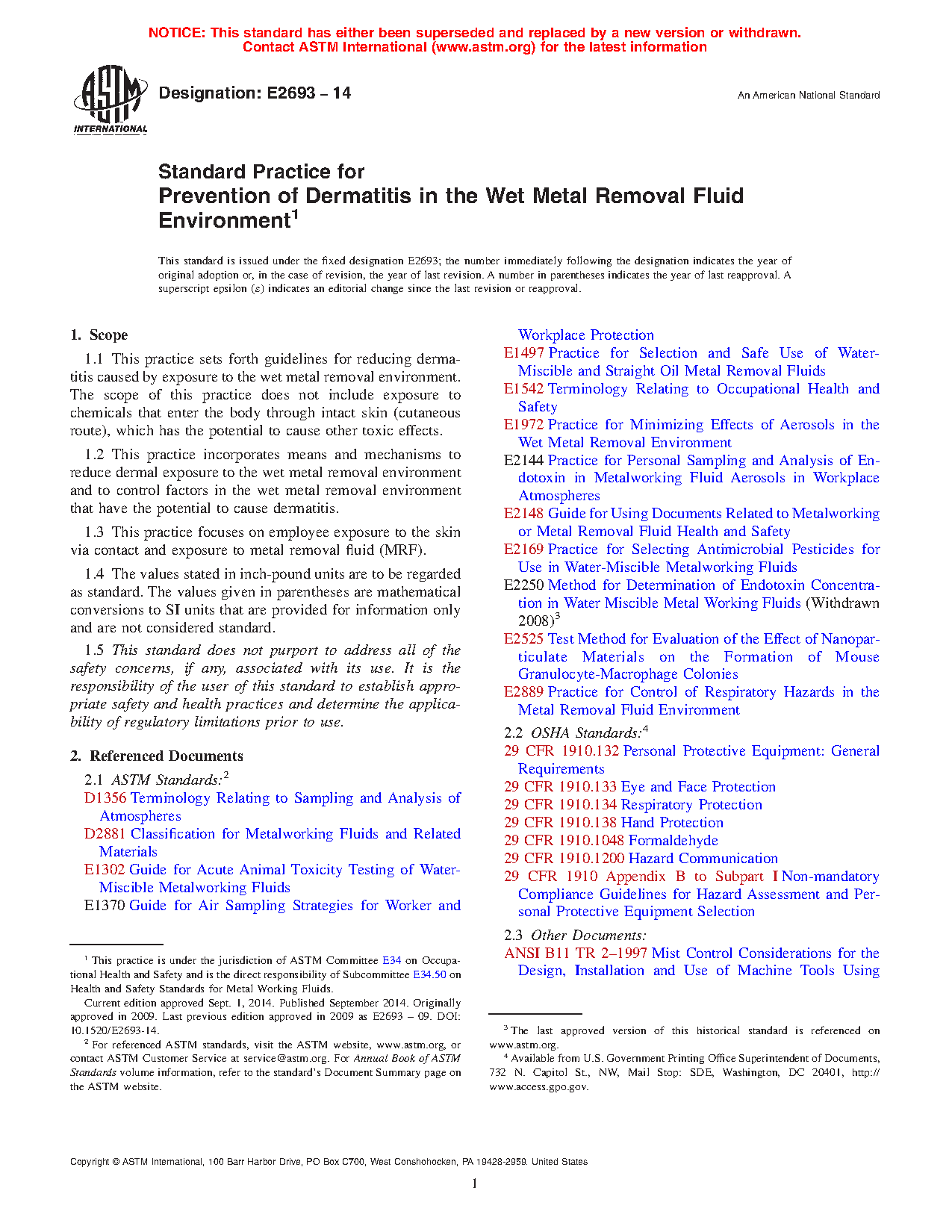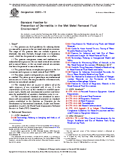 1.1 This practice sets forth guidelines for reducing dermatitis caused by exposure to the wet metal removal environment. The scope of this practice does not include exposure to chemicals that enter the body through intact skin (cutaneous route), which has the potential to cause other toxic effects.