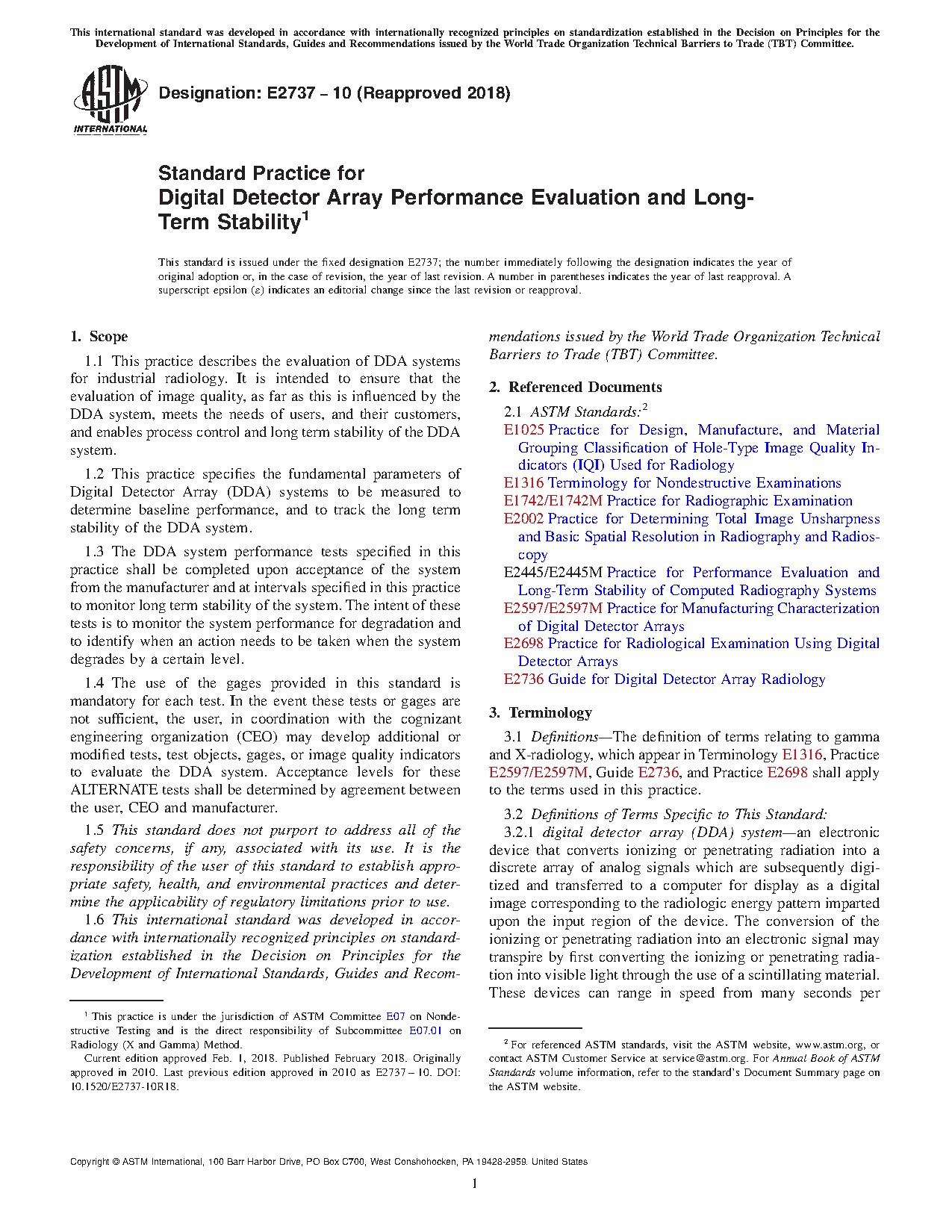 1.2 This practice specifies the fundamental parameters of Digital Detector Array (DDA) systems to be measured to determine baseline performance, and to track the long term stability of the DDA system.