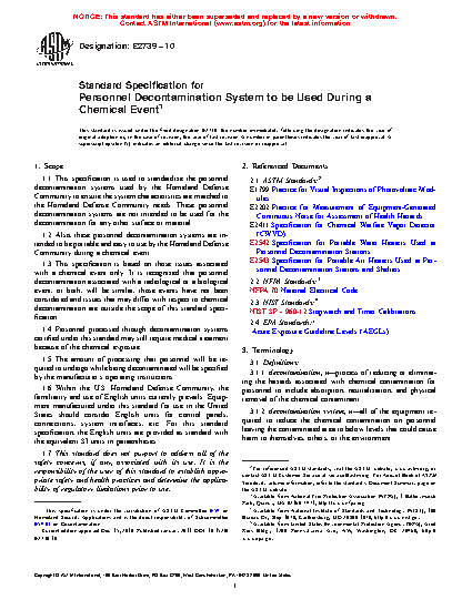 1.3 This specification is based on those issues associated with a chemical event only. It is recognized that personnel decontamination associated with a radiological or a biological event, or both, will be similar, those events have not been considered and issues that may differ with respect to chemical decontamination are outside the scope of this standard specification.