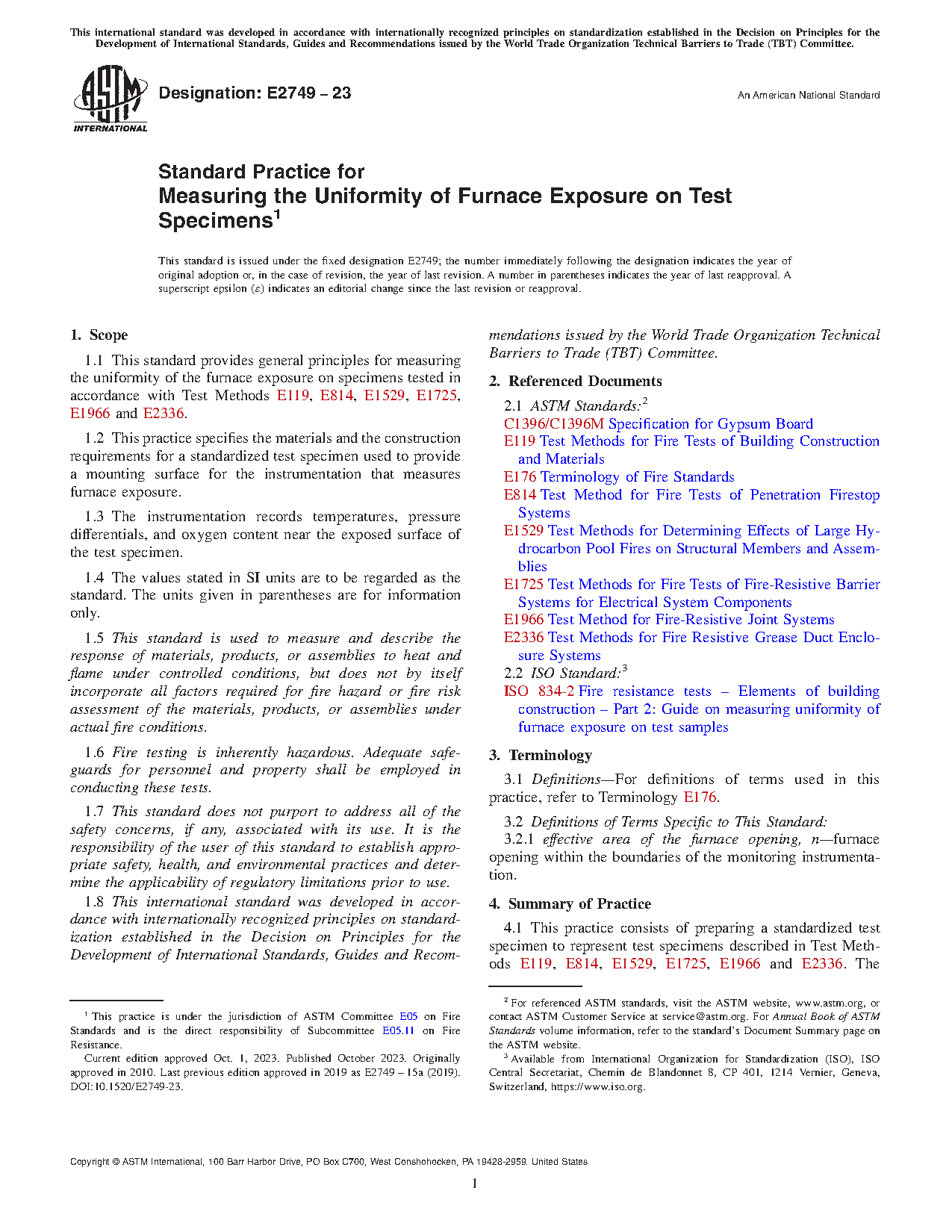 1.2 This practice specifies the materials and the construction requirements for a standardized test specimen used to provide a mounting surface for the instrumentation that measures furnace exposure.