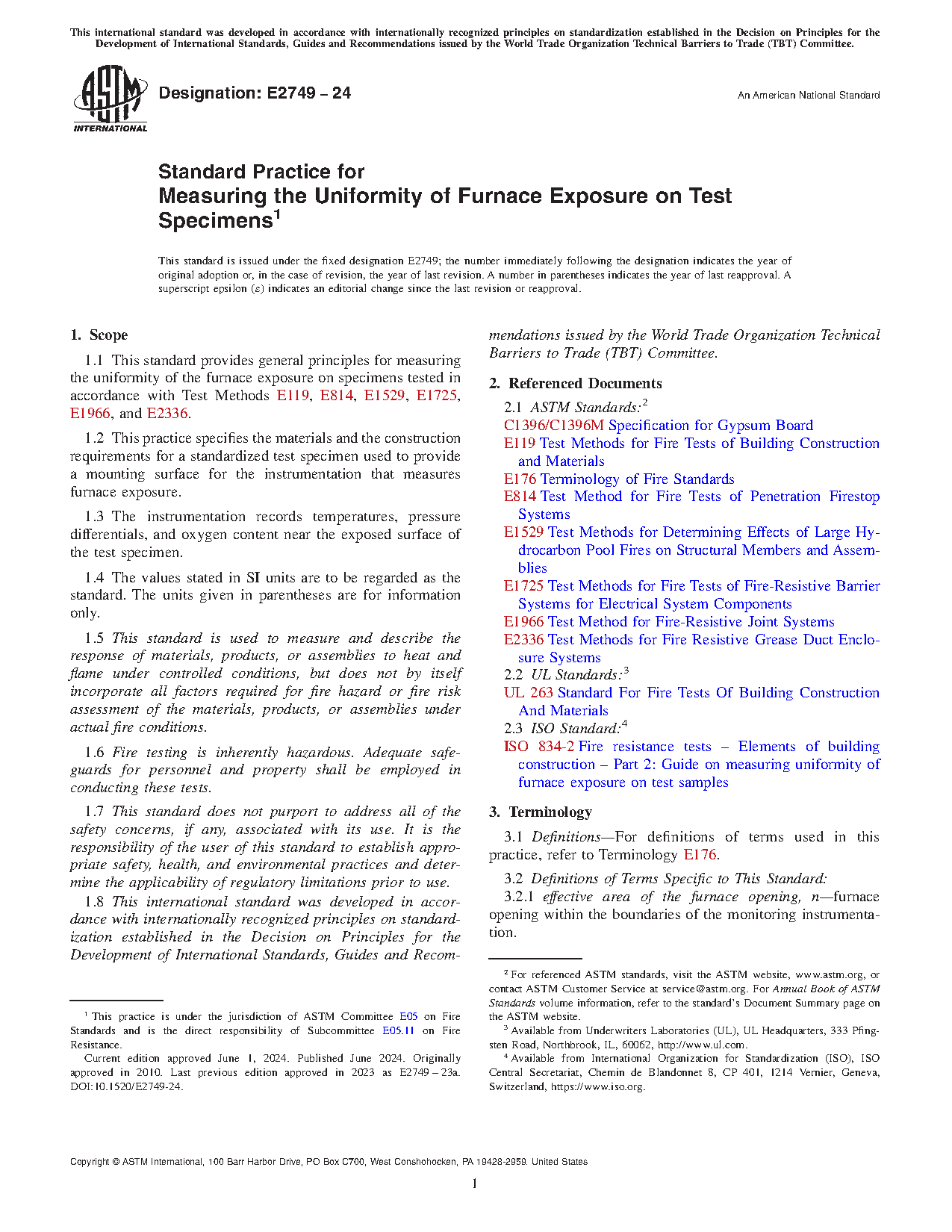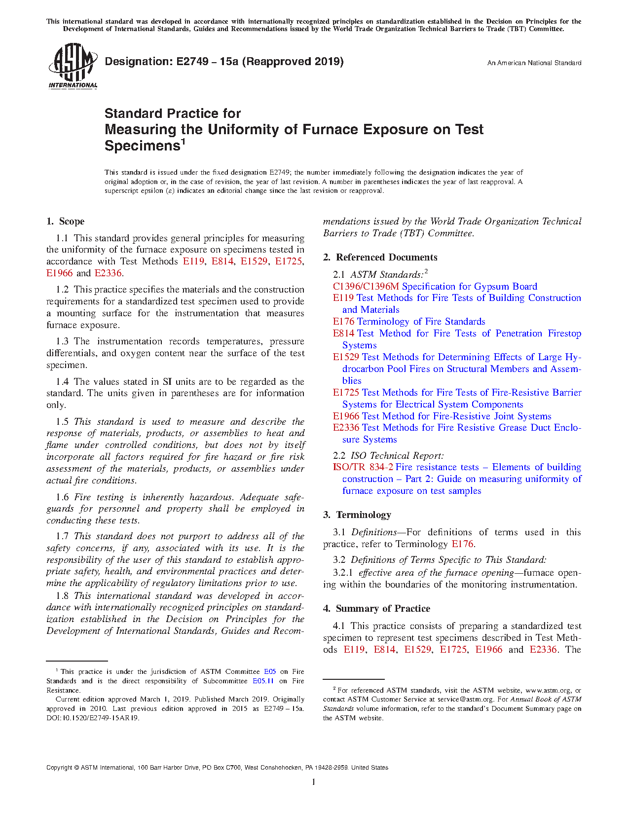 1.1 This standard provides general principles for measuring the uniformity of the furnace exposure on specimens tested in accordance with Test Methods E119, E814, E1529, E1725, E1966 and E2336.