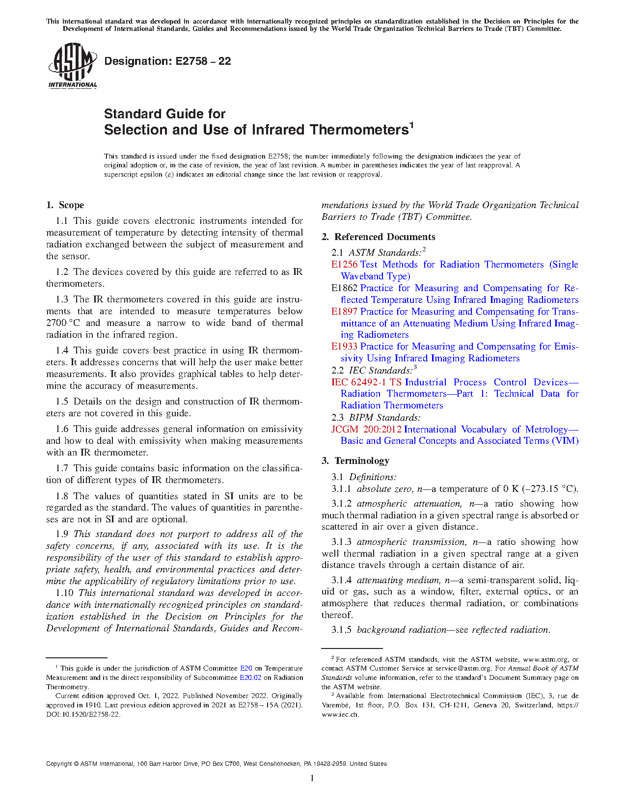1.5 Details on the design and construction of IR thermometers are not covered in this guide.