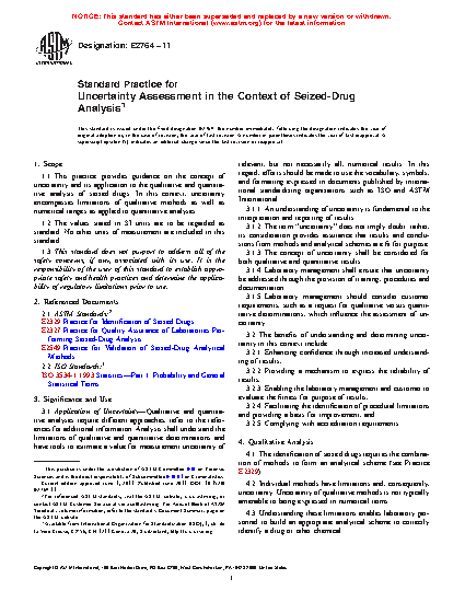 1.1 This practice provides guidance on the concept of uncertainty and its application to the qualitative and quantitative analysis of seized drugs. In this context, uncertainty encompasses limitations of qualitative methods as well as numerical ranges as applied to quantitative analyses.