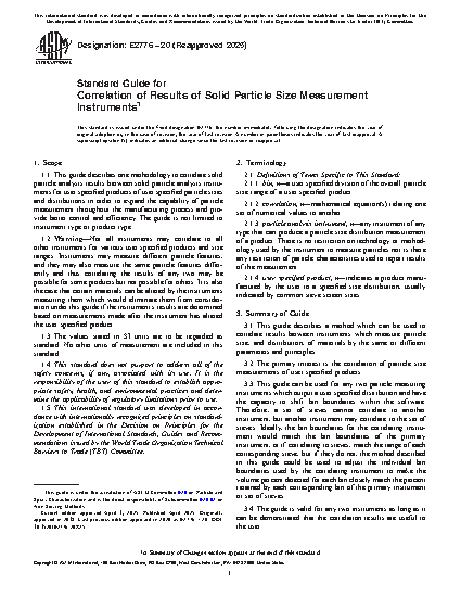 1.2 Warning—Not all instruments may correlate to all other instruments for various user specified products and size ranges. Instruments may measure different particle features, and they may also measure the same particle features differently and thus correlating the results of any two may be possible for some products but not possible for others. It is also the case that certain materials can be altered by the instruments measuring them which would eliminate them from consideration under this guide if the instrument’s results are determined based on measurements made after the instrument has altered the user specified product.
