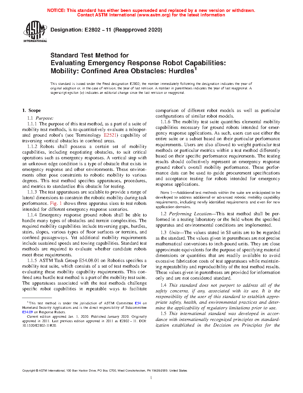 Note 1: Additional test methods within the suite are anticipated to be developed to address additional or advanced robotic mobility capability requirements, including newly identified requirements and even for new application domains.