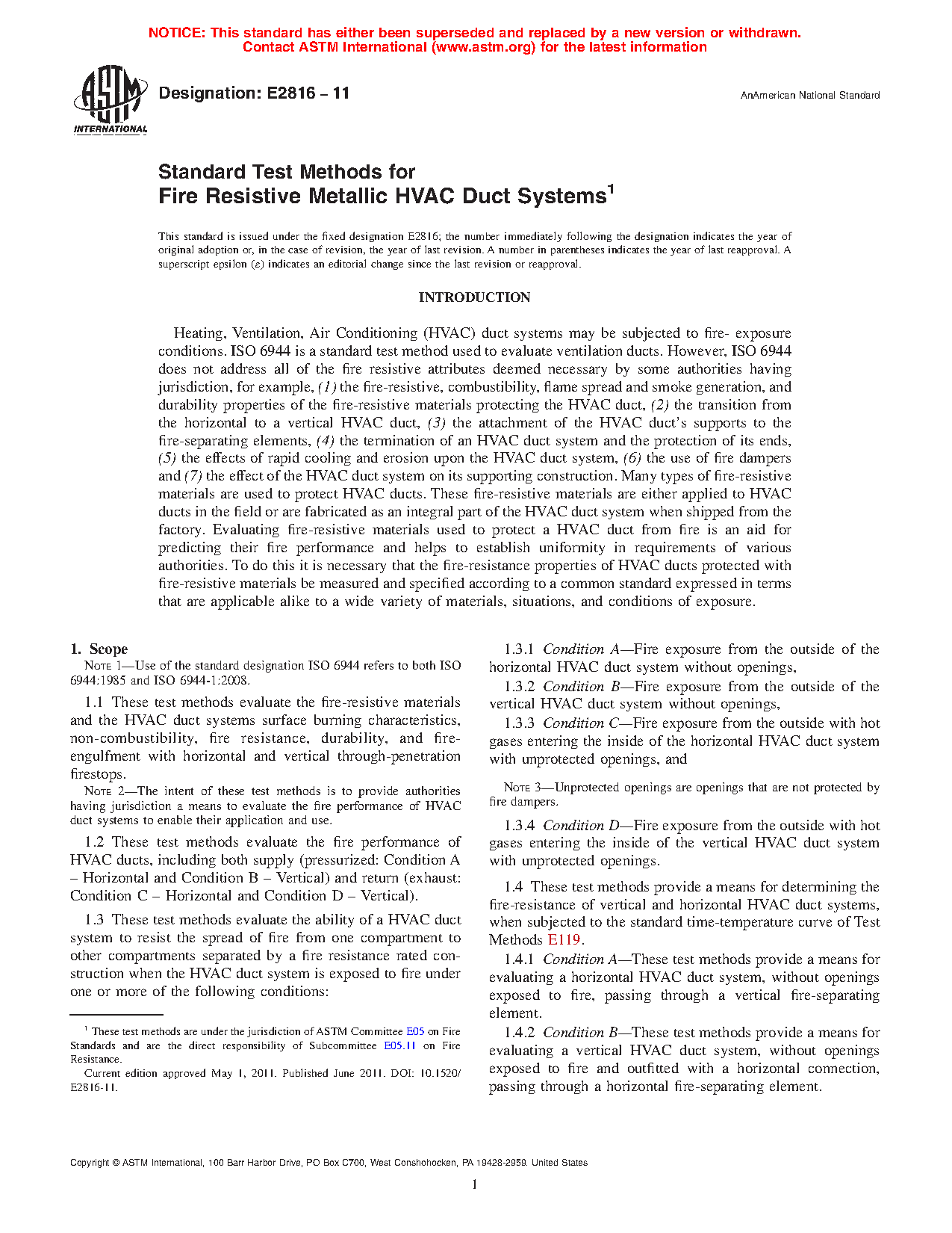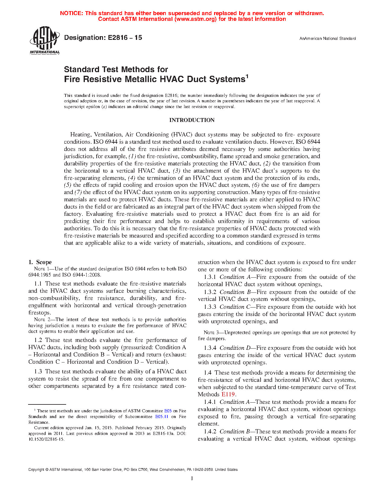 1.4 These test methods provide a means for determining the fire-resistance of vertical and horizontal HVAC duct systems, when subjected to the standard time-temperature curve of Test Methods E119.
