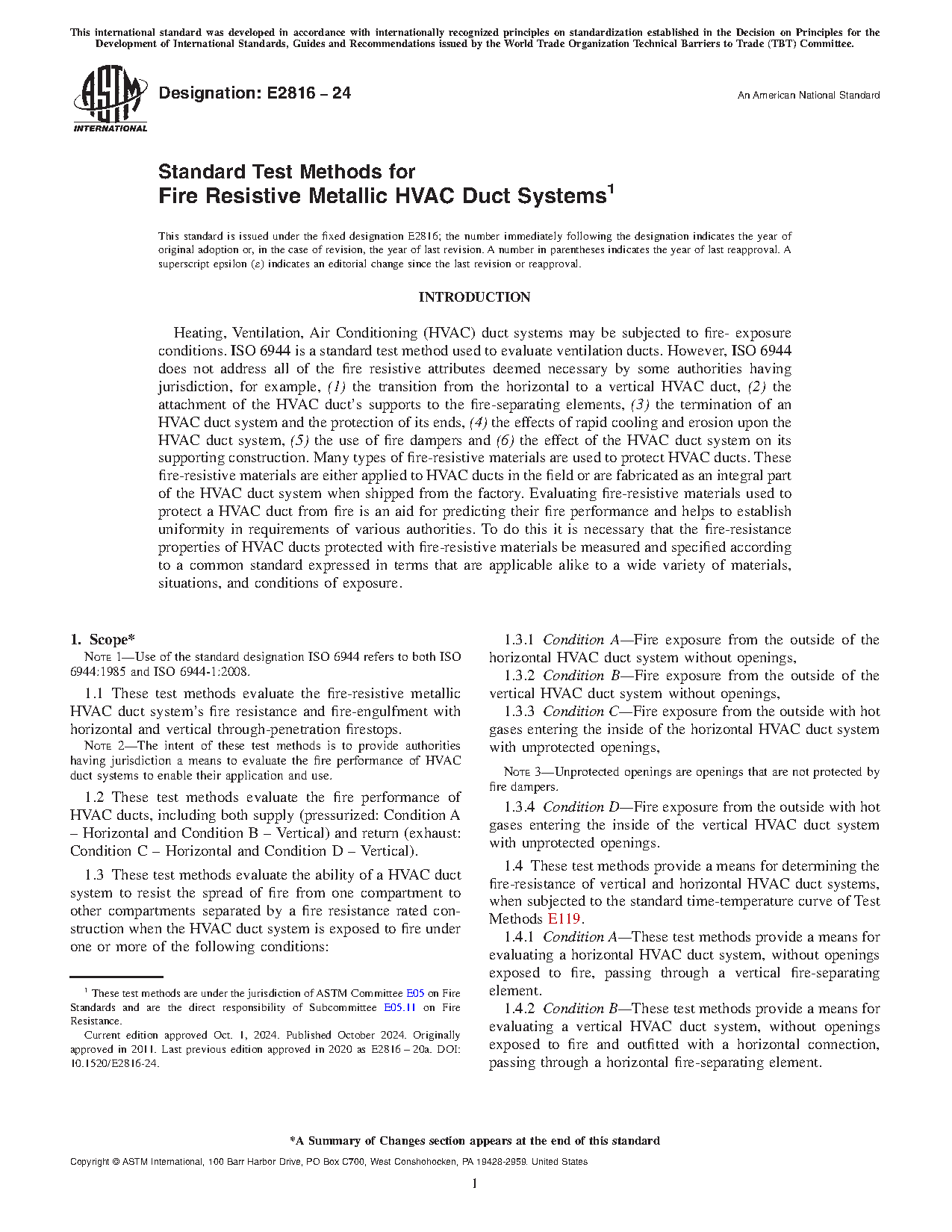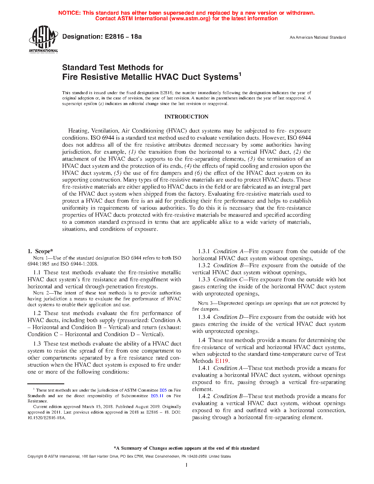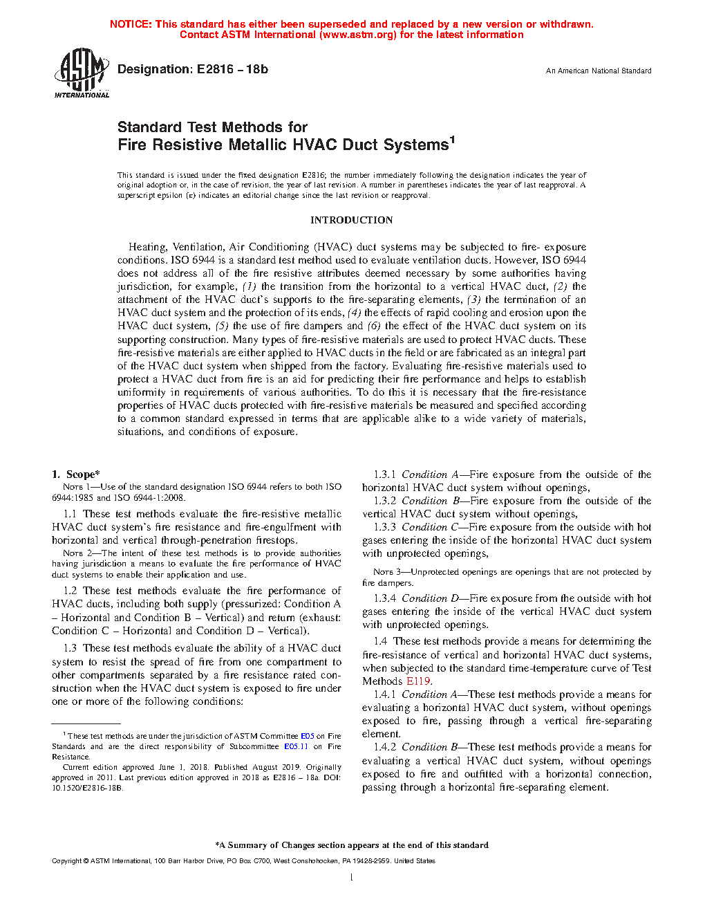 1.4 These test methods provide a means for determining the fire-resistance of vertical and horizontal HVAC duct systems, when subjected to the standard time-temperature curve of Test Methods E119.