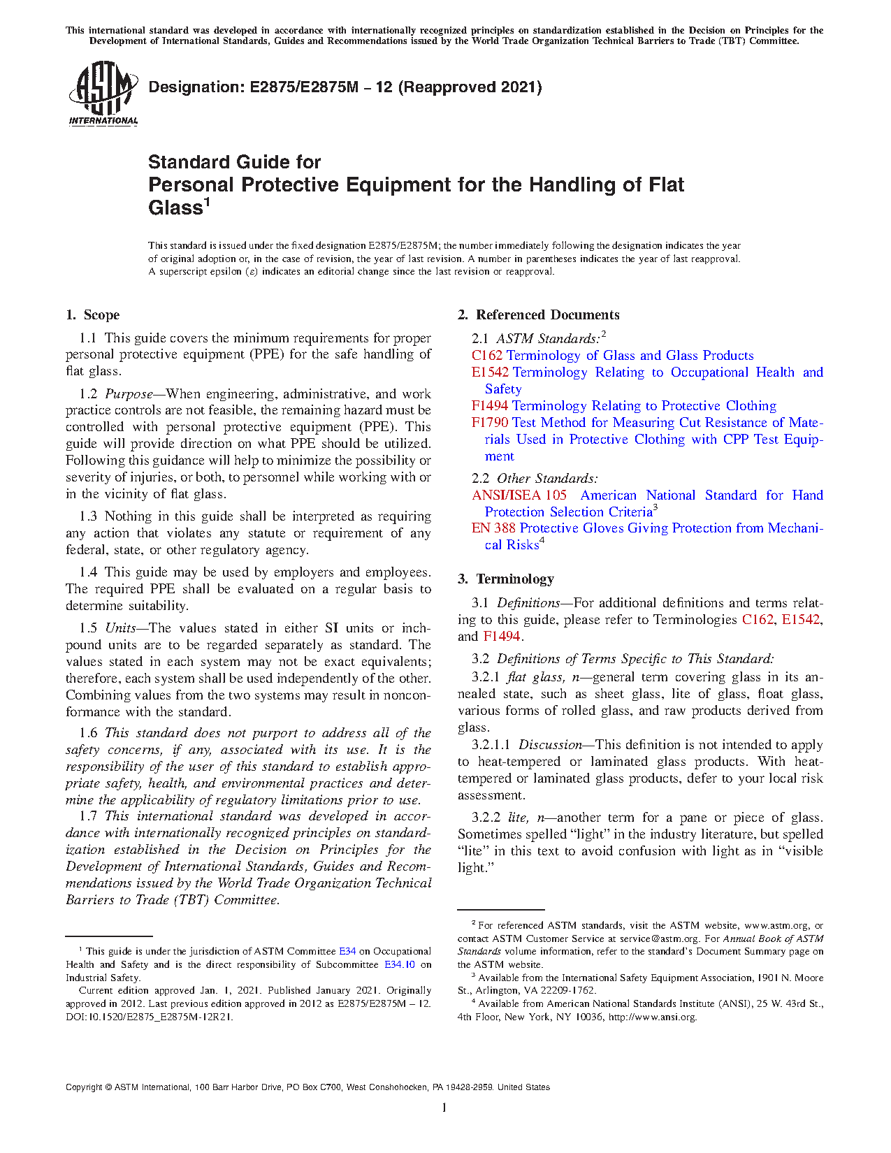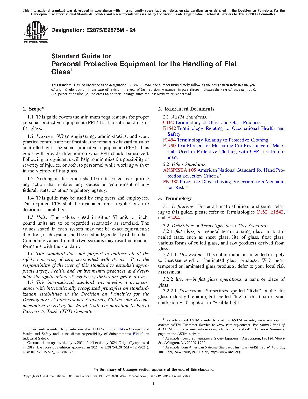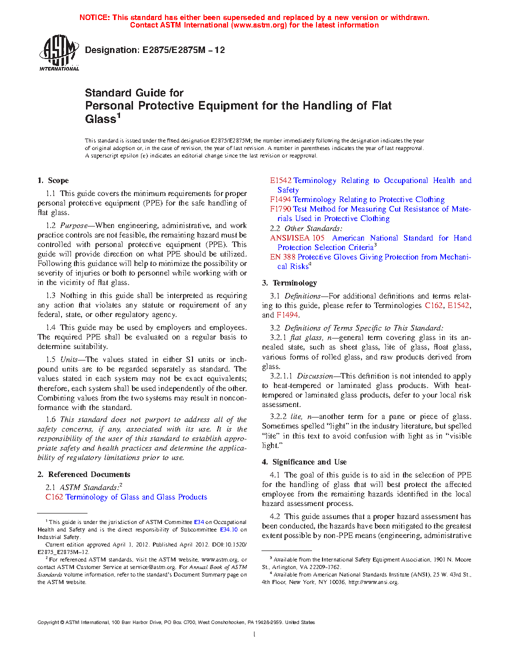1.1 This guide covers the minimum requirements for proper personal protective equipment (PPE) for the safe handling of flat glass.