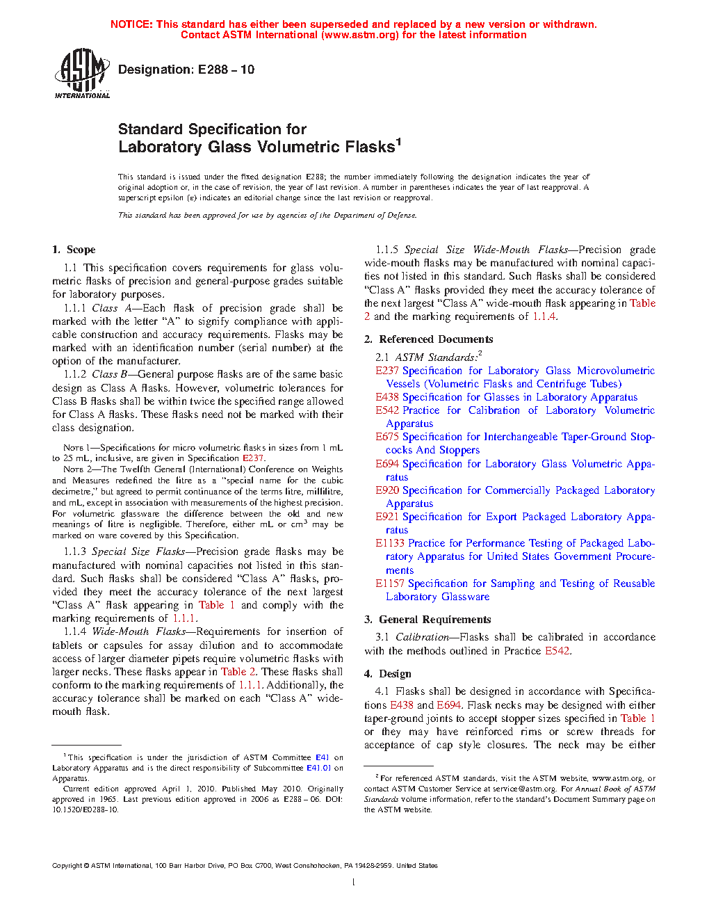 Note 1: Specifications for micro volumetric flasks in sizes from 1 mL to 25 mL, inclusive, are given in Specification E237.