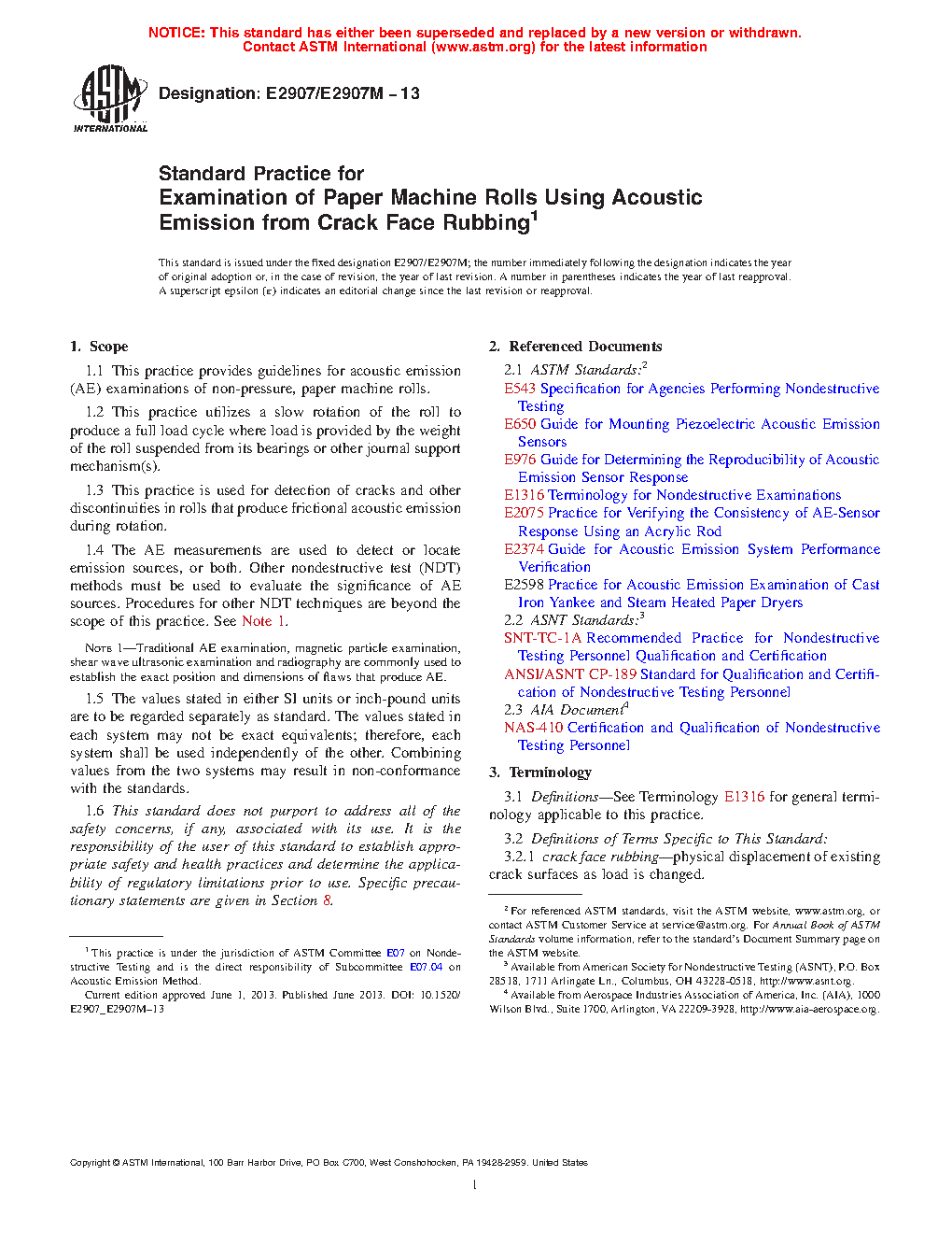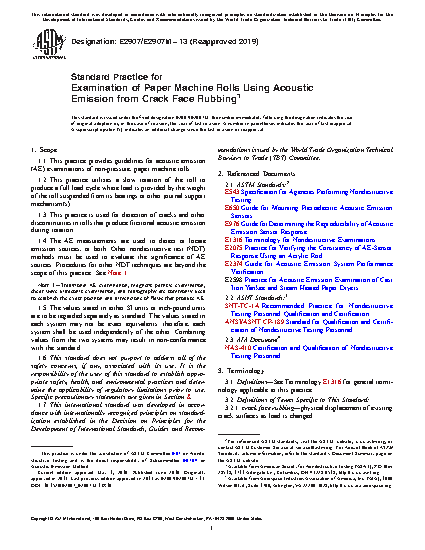 1.3 This practice is used for detection of cracks and other discontinuities in rolls that produce frictional acoustic emission during rotation.