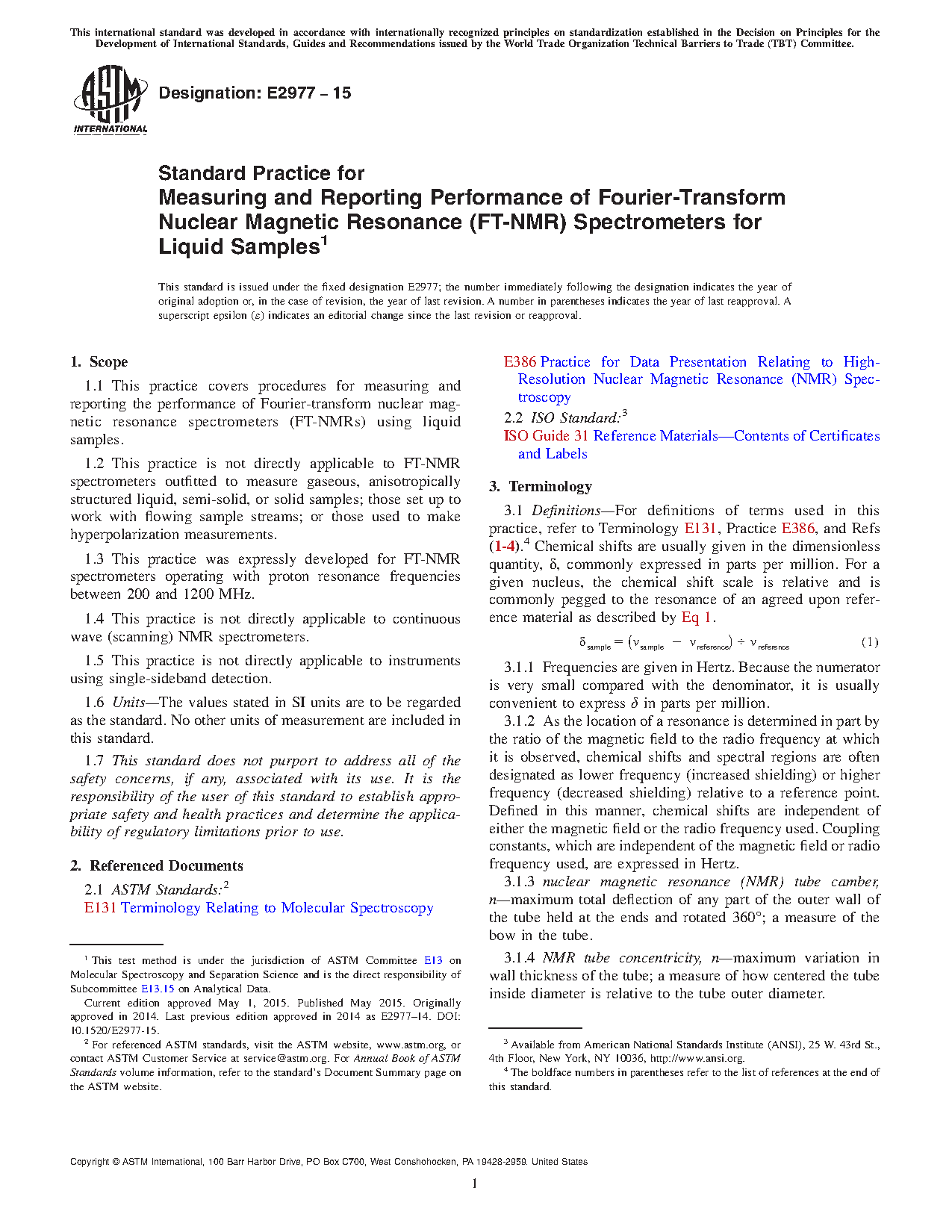 1.3 This practice was expressly developed for FT-NMR spectrometers operating with proton resonance frequencies between 200 MHz and 1200 MHz.