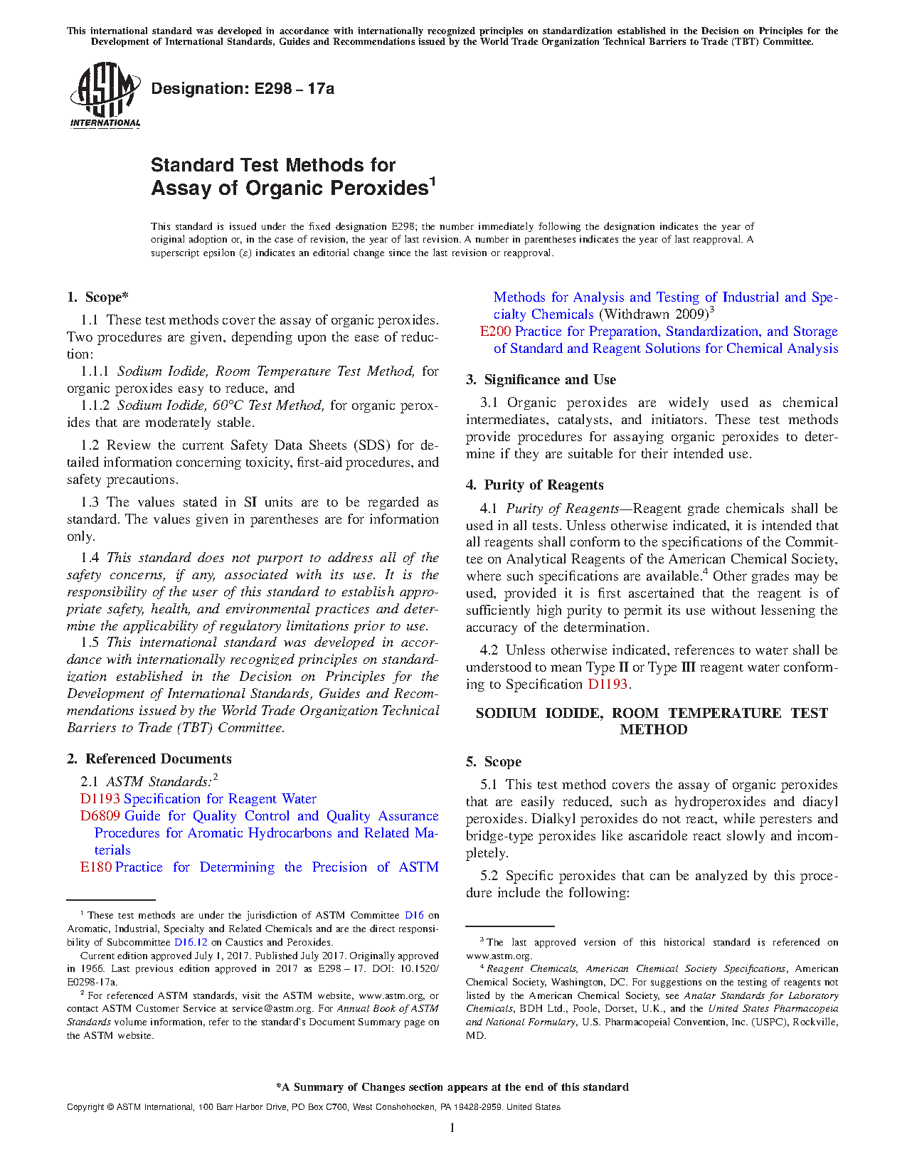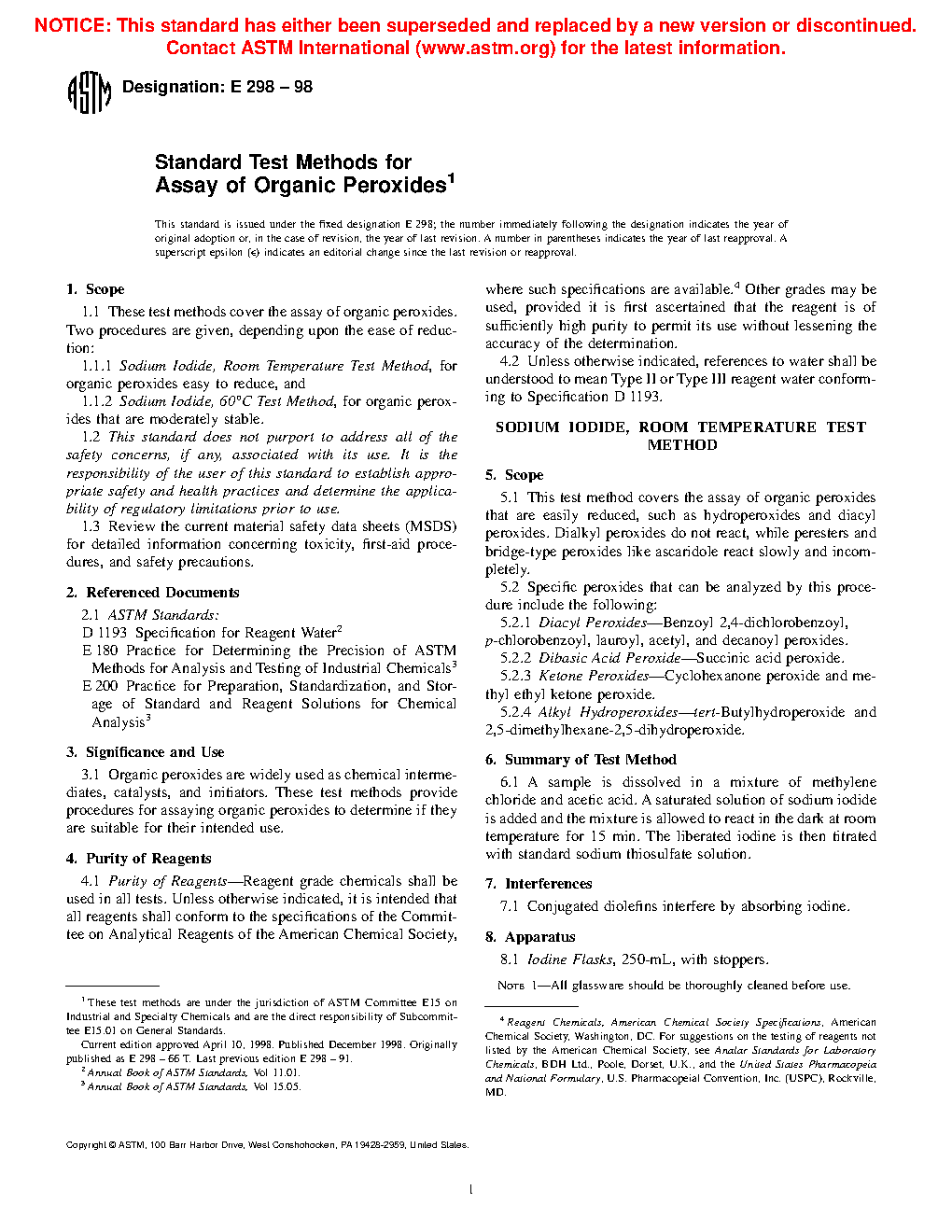 1.1.1 Sodium Iodide, Room Temperature Test Method, for organic peroxides easy to reduce, and