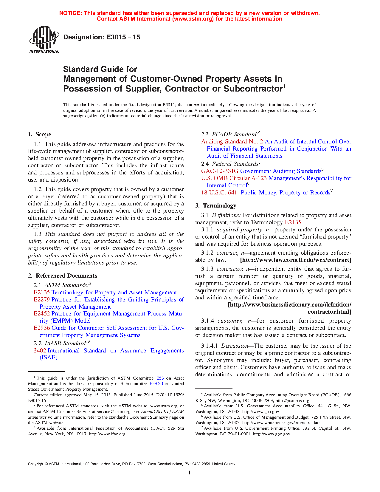 1.2 This guide covers property that is owned by a customer or a buyer (referred to as customer-owned property) that is either directly furnished by a buyer, customer, or acquired by a supplier on behalf of a customer where title to the property ultimately vests with the customer while in the possession of a supplier, contractor or subcontractor.