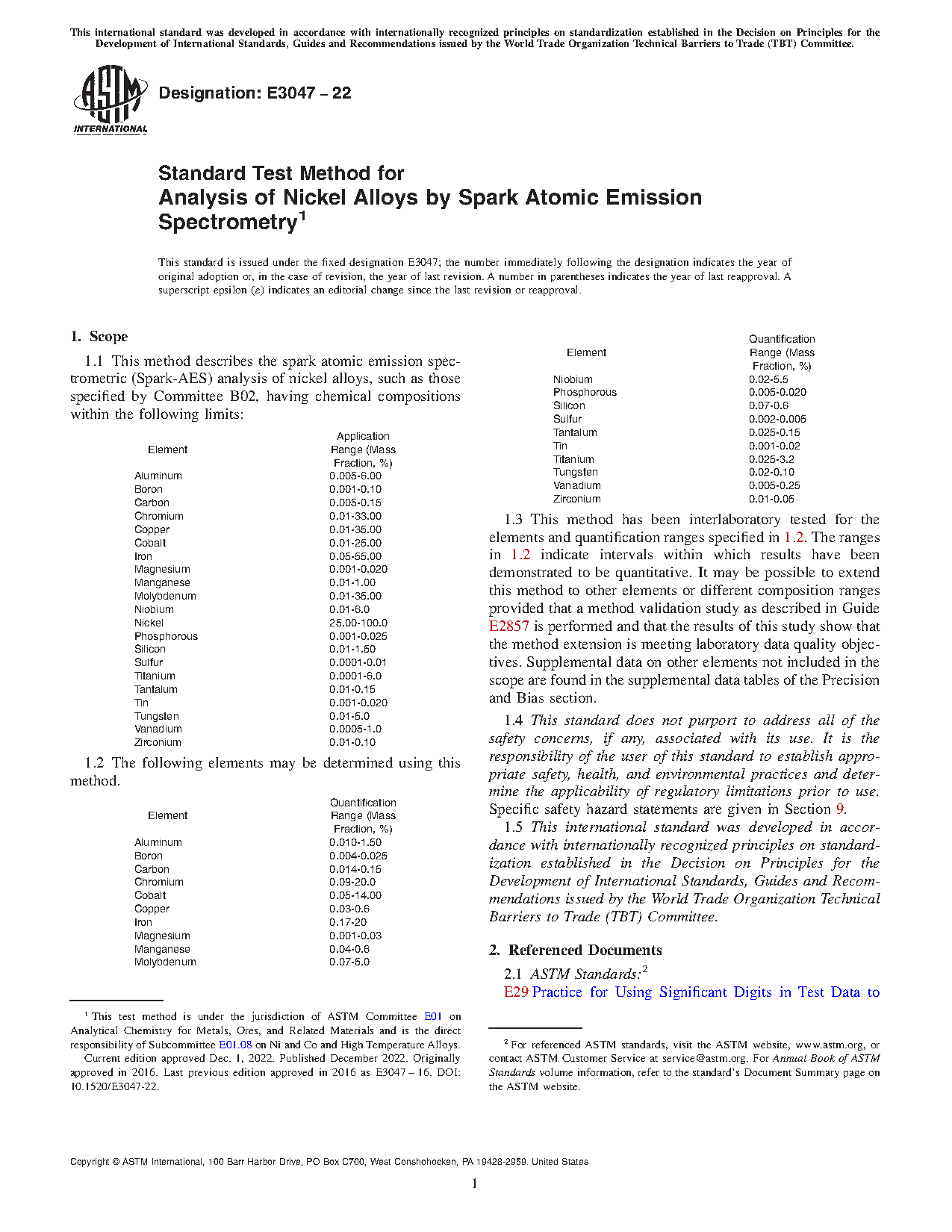 1.3 This method has been interlaboratory tested for the elements and quantification ranges specified in section 1.2. The ranges in section 1.2 indicate intervals within which results have been demonstrated to be quantitative. It may be possible to extend this method to other elements or different composition ranges provided that a method validation study as described in Guide E2857 is performed and that the results of this study show that the method extension is meeting laboratory data quality objectives. Supplemental data on other elements not included in the scope are found in the supplemental data tables of the Precision and Bias section.