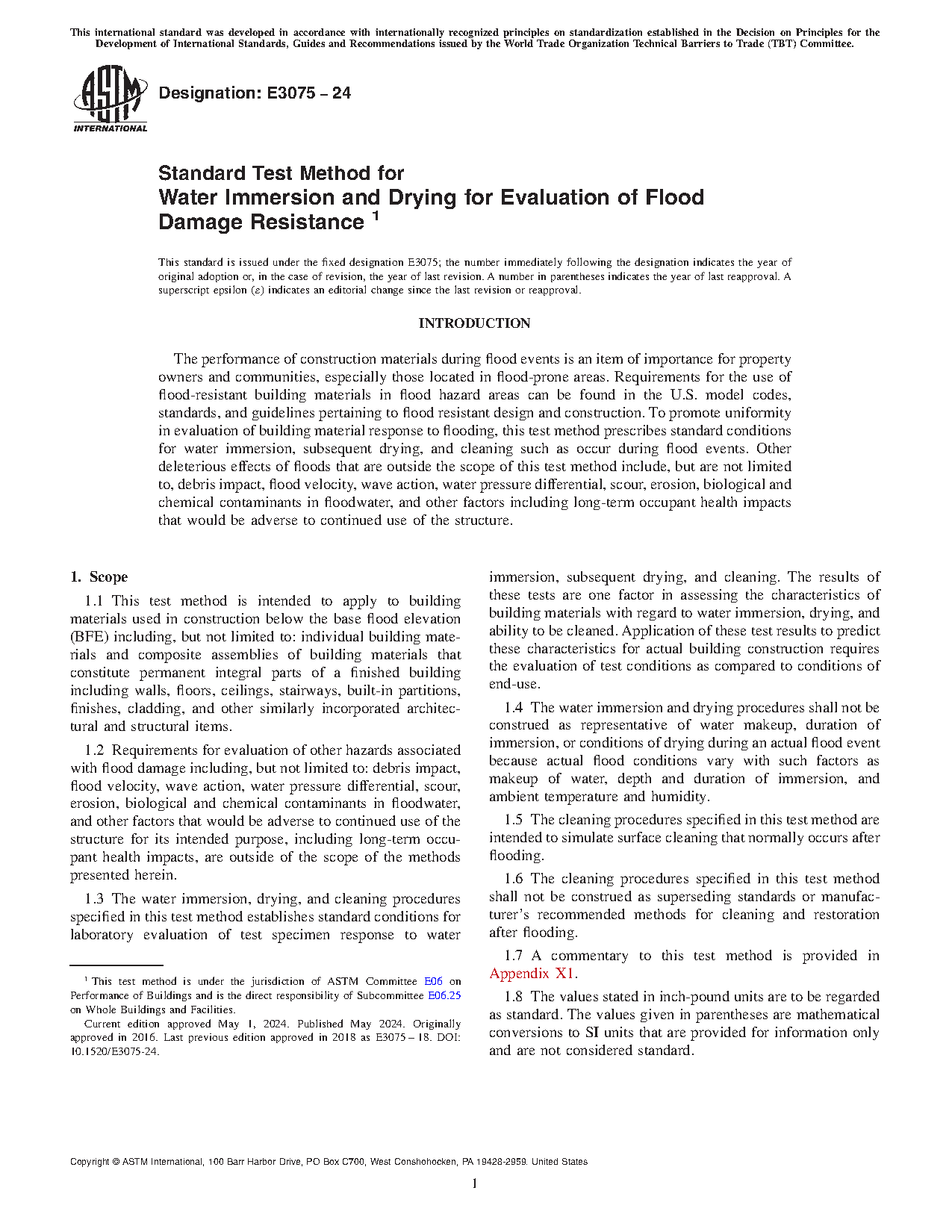 1.10 This international standard was developed in accordance with internationally recognized principles on standardization established in the Decision on Principles for the Development of International Standards, Guides and Recommendations issued by the World Trade Organization Technical Barriers to Trade (TBT) Committee.