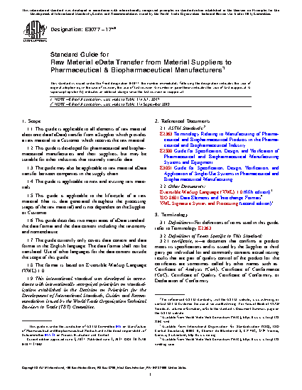 1.3 The guide may also be applicable to raw material eData transfer between companies in the supply chain.
