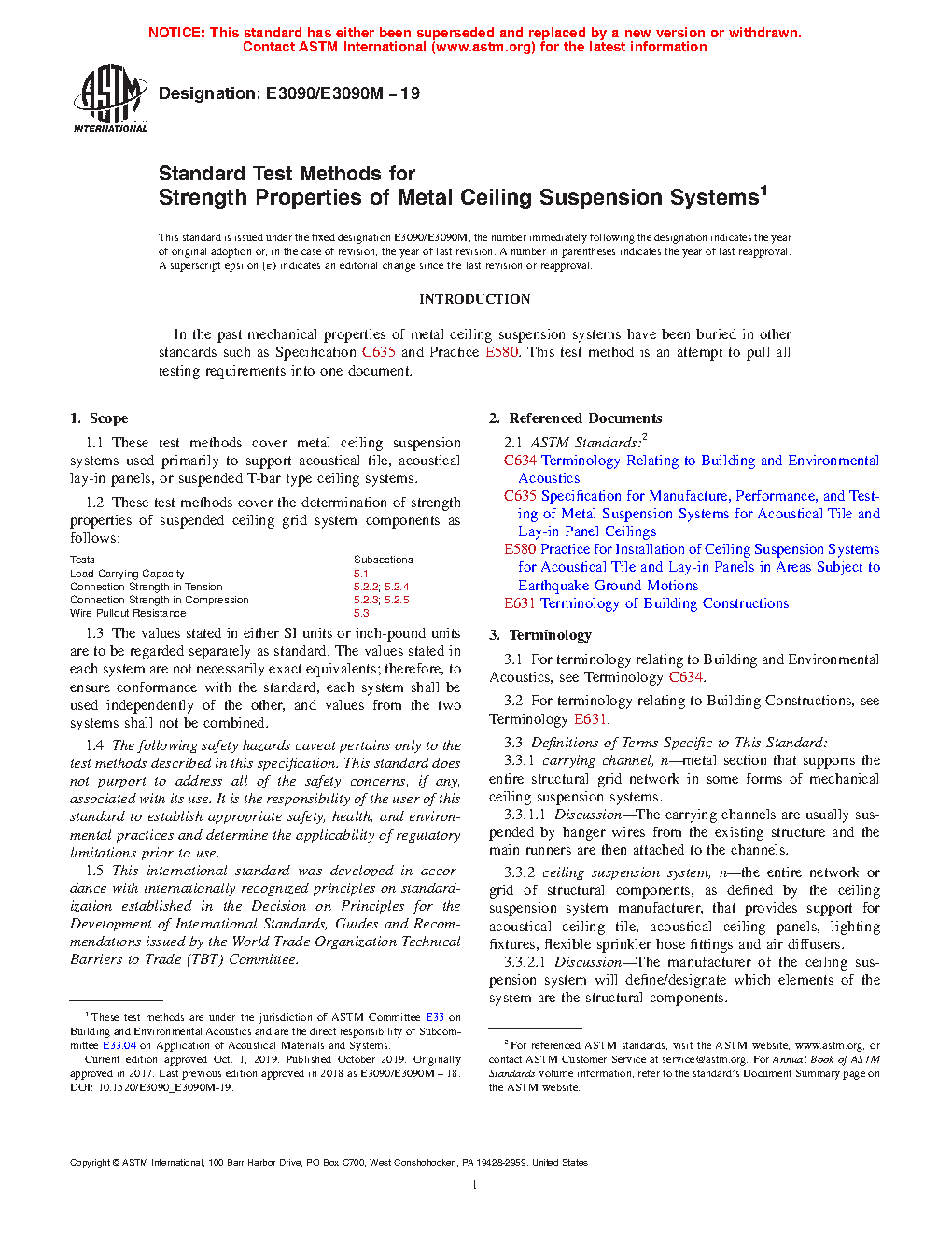 1.2 These test methods cover the determination of strength properties of suspended ceiling grid system components as follows: