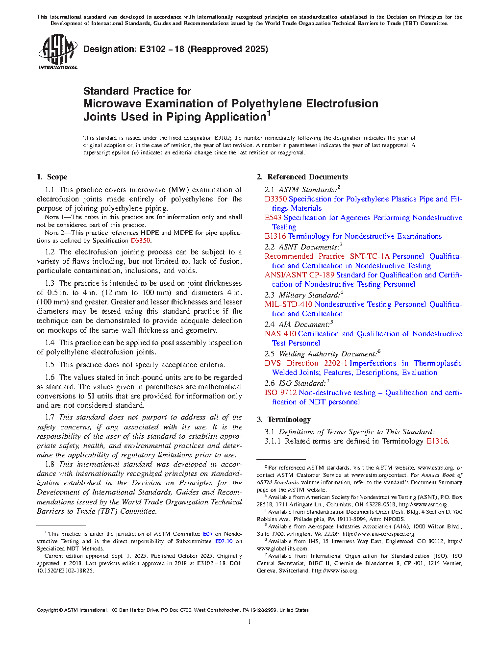 1.1 This practice covers microwave (MW) examination of electrofusion joints made entirely of polyethylene for the purpose of joining polyethylene piping.