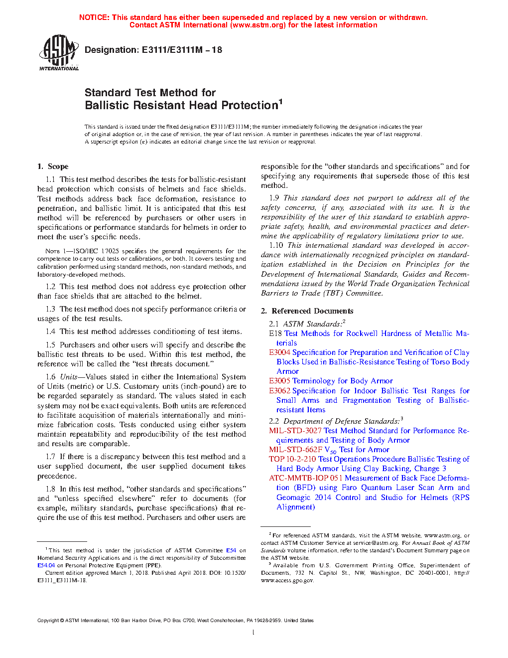 5.1 U.S. Department of Defense and U.S. Department of Justice standards and specifications may require these test methods for assessing the penetration resistance and backface deformation of ballistic-resistant helmets and face shields.