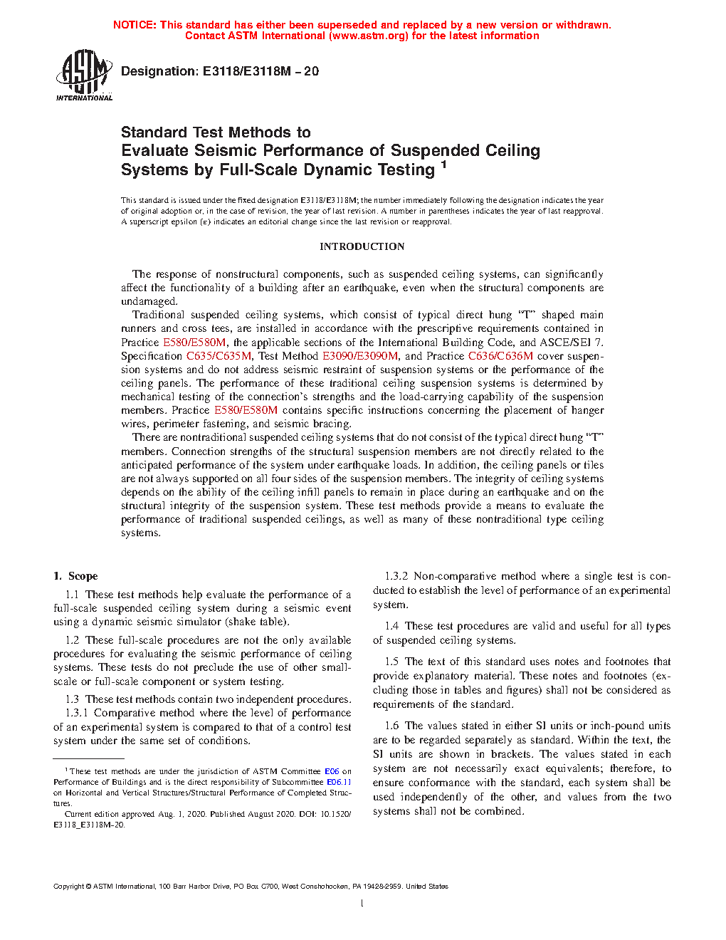 1.2 These full-scale procedures are not the only available procedures for evaluating the seismic performance of ceiling systems. These tests do not preclude the use of other small-scale or full-scale component or system testing.