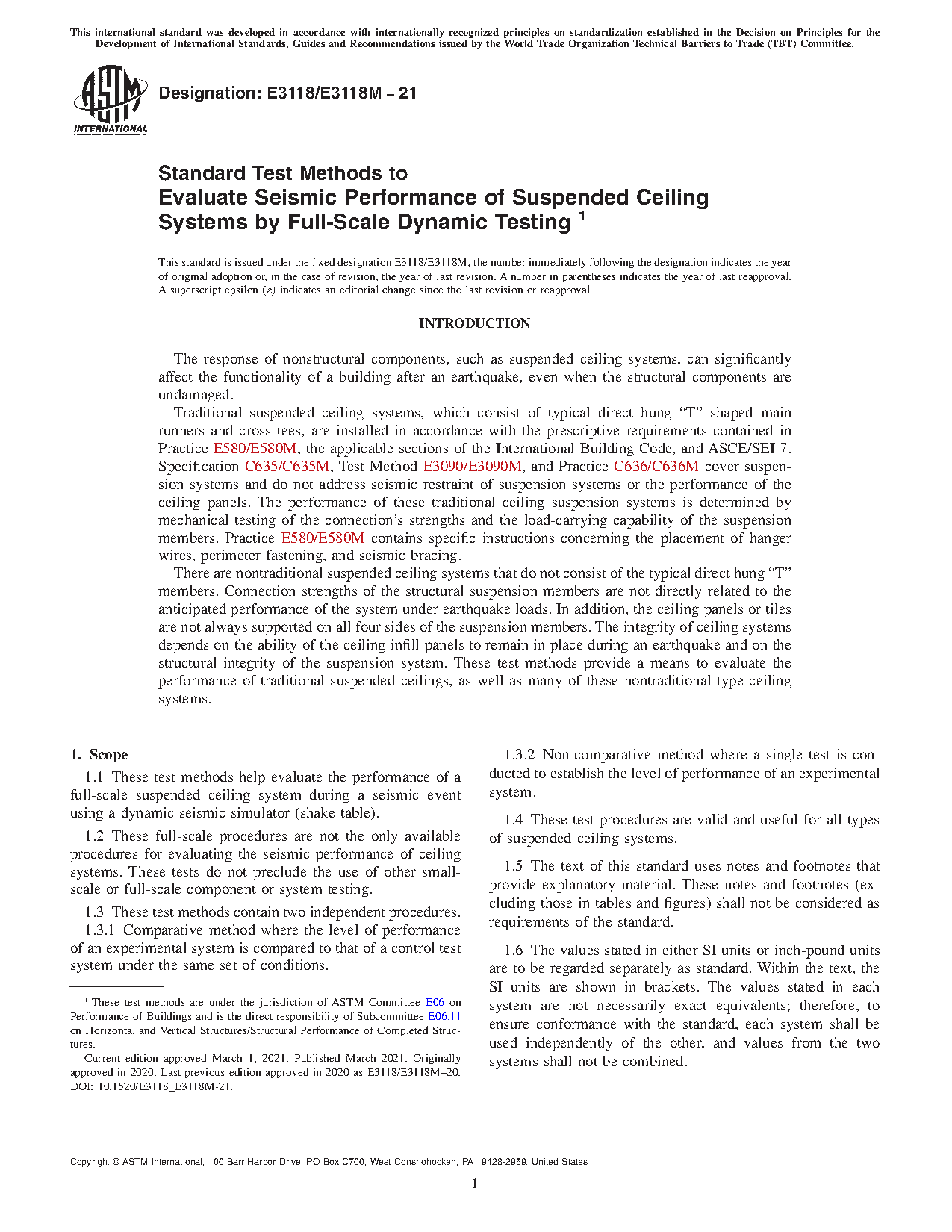 1.1 These test methods help evaluate the performance of a full-scale suspended ceiling system during a seismic event using a dynamic seismic simulator (shake table).