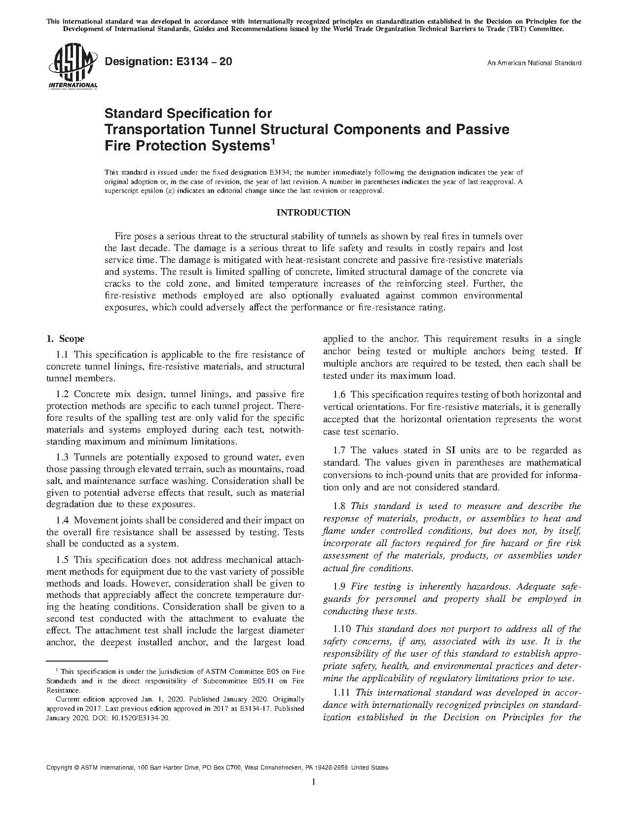 1.1 This specification is applicable to the fire resistance of concrete tunnel linings, fire-resistive materials, and structural tunnel members.