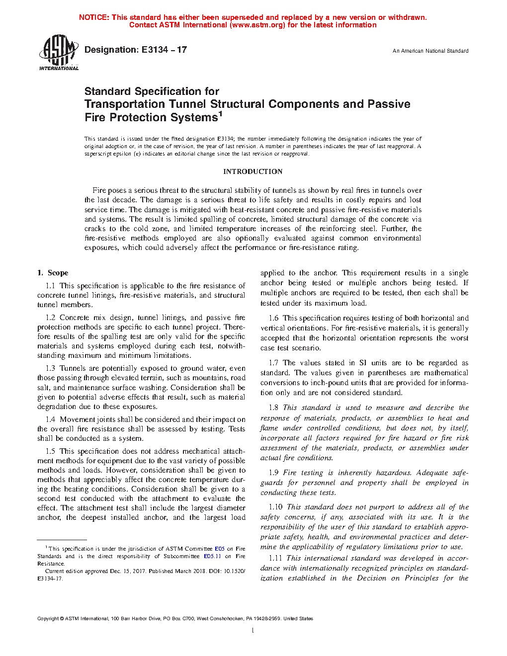 1.1 This specification is applicable to the fire resistance of concrete tunnel linings, fire-resistive materials, and structural tunnel members.