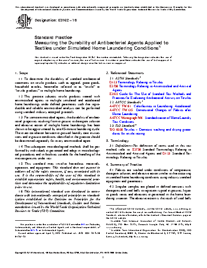 1.1 To determine the durability of standard antibacterial treatments on textile products such as apparel, piece goods, household articles, hereinafter referred to as “textile” or “textile products” to multiple home launderings.