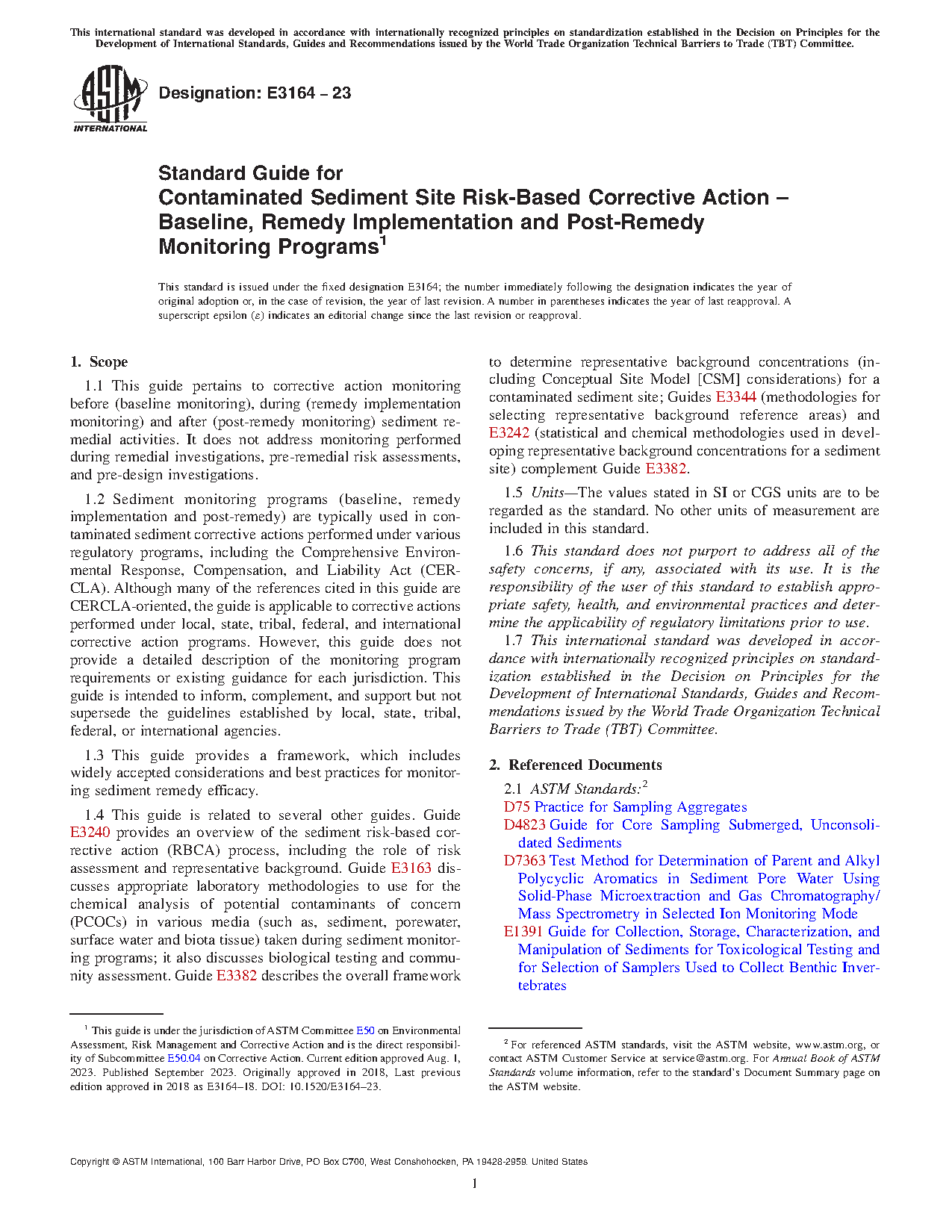 1.4 This international standard was developed in accordance with internationally recognized principles on standardization established in the Decision on Principles for the Development of International Standards, Guides and Recommendations issued by the World Trade Organization Technical Barriers to Trade (TBT) Committee.