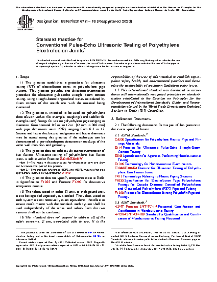 1.3 This practice does not address ultrasonic examination of butt fusions. Ultrasonic testing of polyethylene butt fusion joints is addressed in Practice E3044/E3044M.