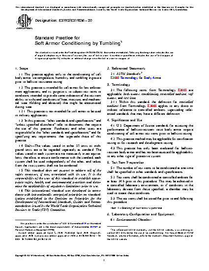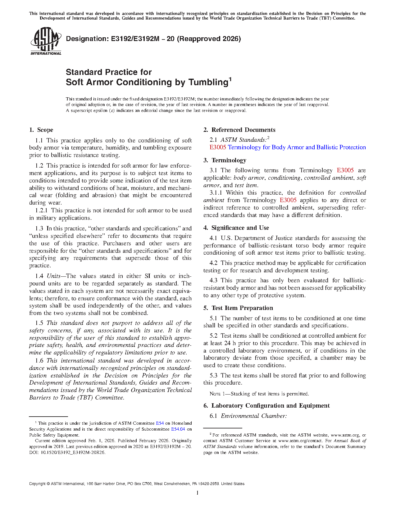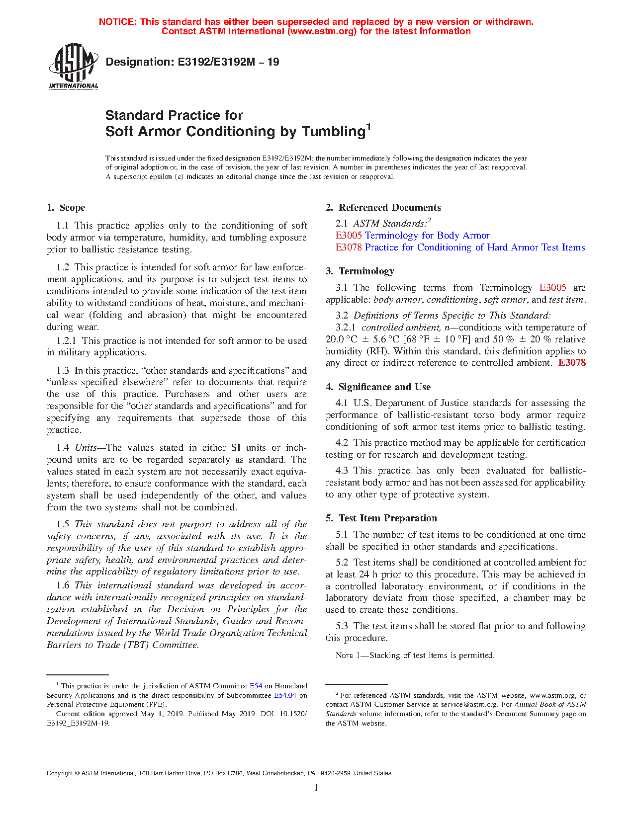 1.1Â This practice applies only to the conditioning of soft body armor via temperature, humidity, and tumbling exposure prior to ballistic resistance testing.