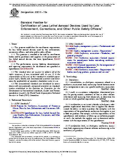 1.1.1 This practice is intended to be used by certification bodies and by purchasers and suppliers in the procurement of less lethal aerosol devices that meet Specification E3187/E3187M.