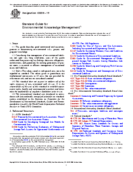 1.1 This guide describes good commercial and customary practice in documenting environmental risks, project, and program knowledge.
