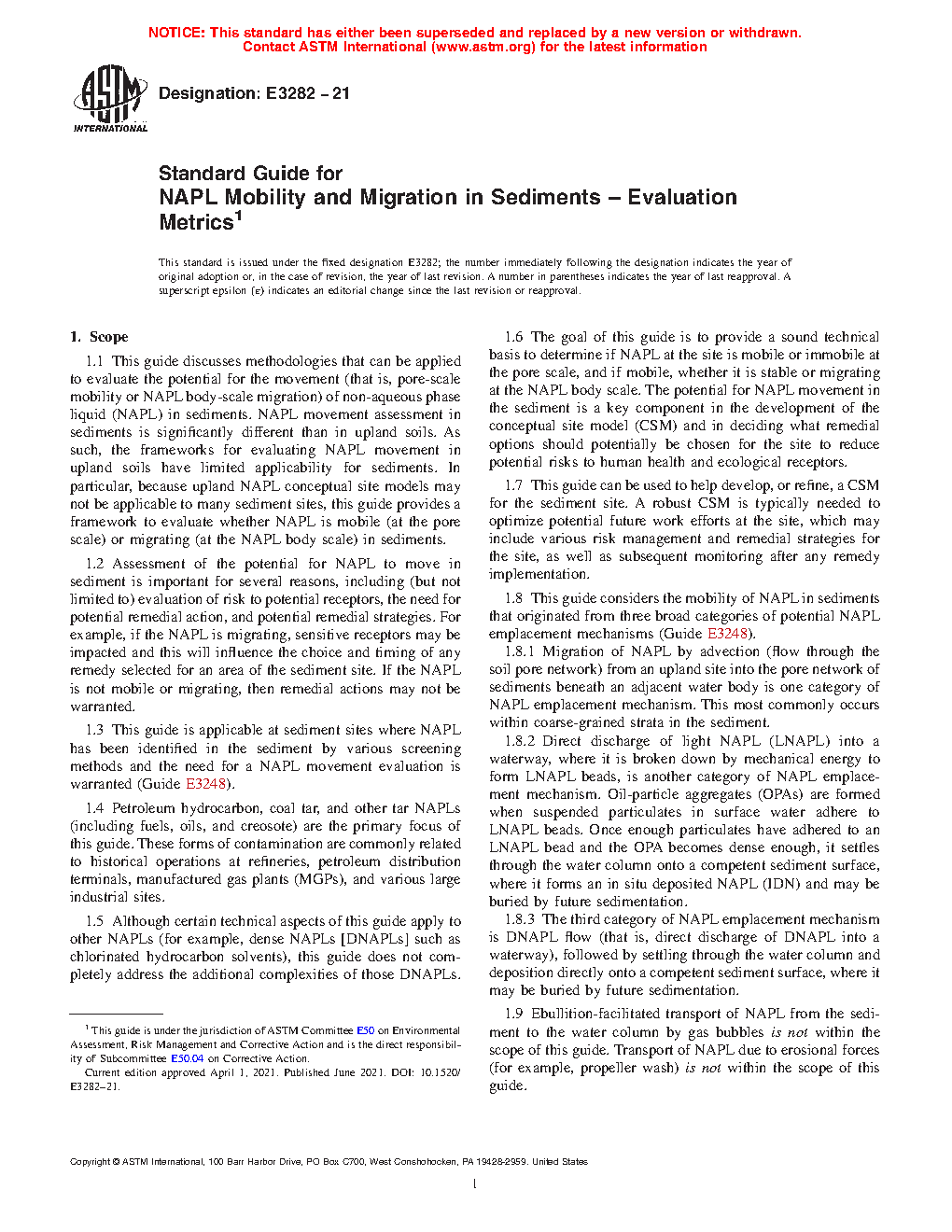 1.8 This guide considers the mobility of NAPL in sediments that originated from three broad categories of potential NAPL emplacement mechanisms (Guide E3248).