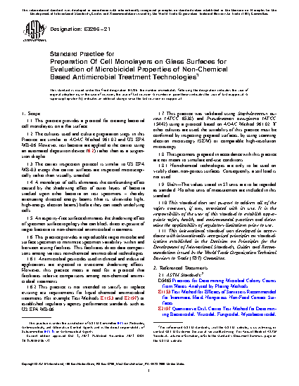 1.6 This practice provides a reproducible target microbe and surface specimen to minimize specimen variability within and between testing facilities. This facilitates direct data comparisons among various non-chemical antimicrobial technologies.