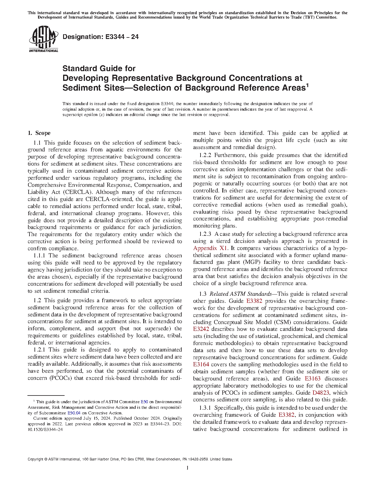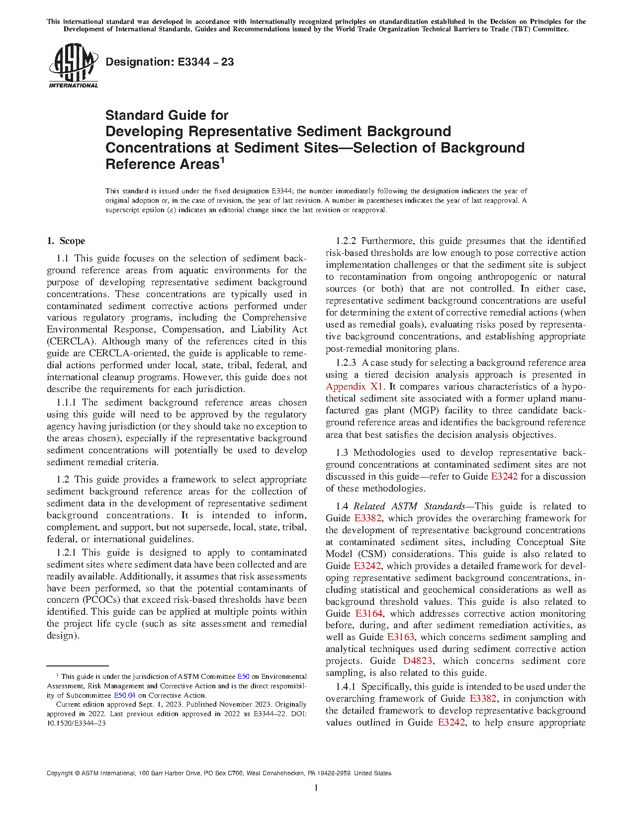 1.3.1 Specifically, this guide is intended to be used under the overarching framework of Guide E3382, in conjunction with the detailed framework to evaluate data and develop representative background concentrations for sediment outlined in Guide E3242, to help ensure appropriate background reference areas are chosen for use in representative background concentration development.