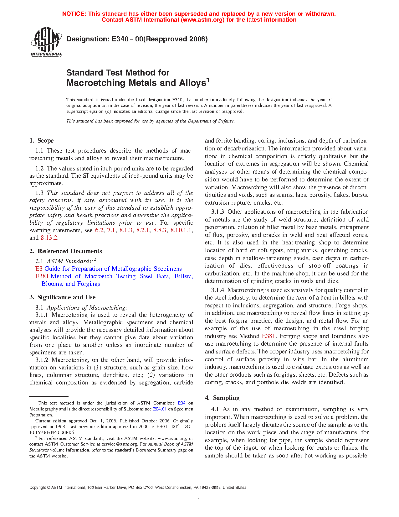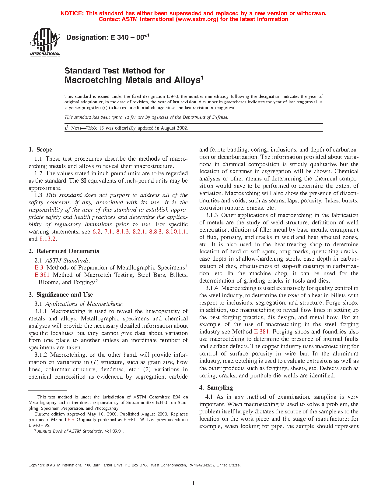 1.1 These procedures describe the methods of macroetching metals and alloys to reveal their macrostructure.
