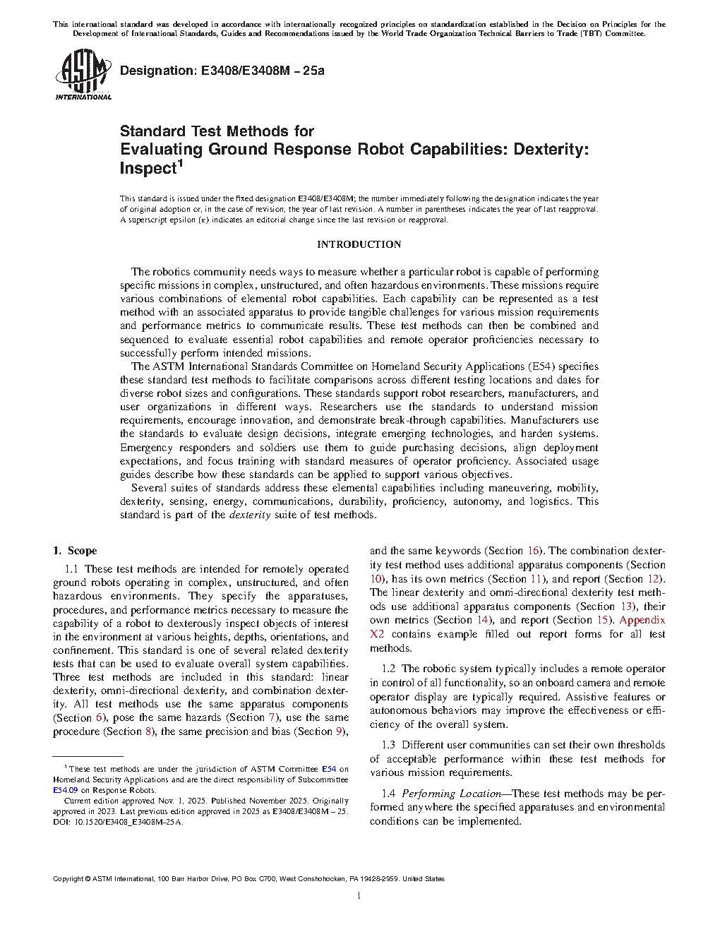 1.2 The robotic system typically includes a remote operator in control of all functionality, so an onboard camera and remote operator display are typically required. Assistive features or autonomous behaviors may improve the effectiveness or efficiency of the overall system.