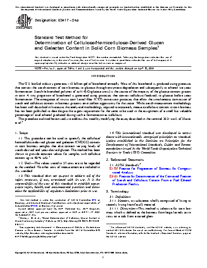4.5 This test method is intended for use in the measurement of the fermentable portion of cellulosic content in pre- and post-fermentation corn and corn-sorghum blended biomass specifically for the apportionment of a percentage of the total ethanol produced in a fermentation as cellulosic.