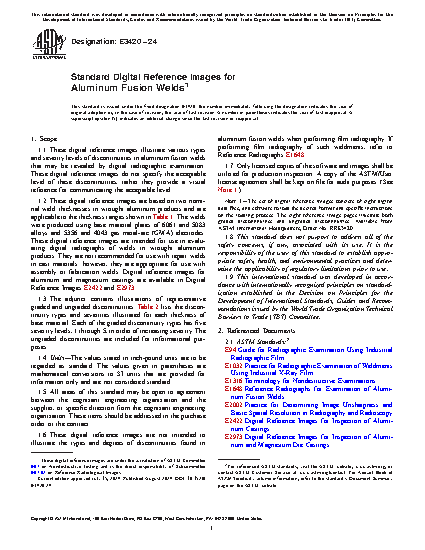 1.6 These digital reference images are not intended to illustrate the types and degrees of discontinuities found in aluminum fusion welds when performing film radiography. If performing film radiography of such weldments, refer to Reference Radiographs E1648.