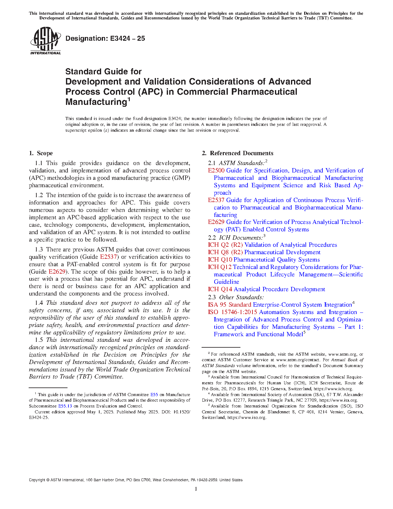 1.3 There are previous ASTM guides that cover continuous quality verification (Guide E2537) or verification activities to ensure that a PAT-enabled control system is fit for purpose (Guide E2629). The scope of this guide however, is to help a user with a process that has potential for APC, understand if there is need or business case for an APC application and understand the components and the process involved.