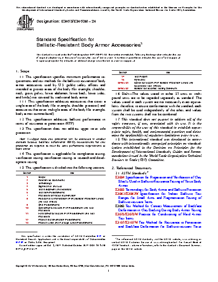 1.1 This specification specifies minimum performance requirements and test methods for the ballistic resistance of body armor accessories used by U.S. public safety officers and intended to protect areas of the body (for example, shoulder, neck, groin, pelvis, lower abdomen, lower back, lower sides, and limbs) not covered by traditional body armor.