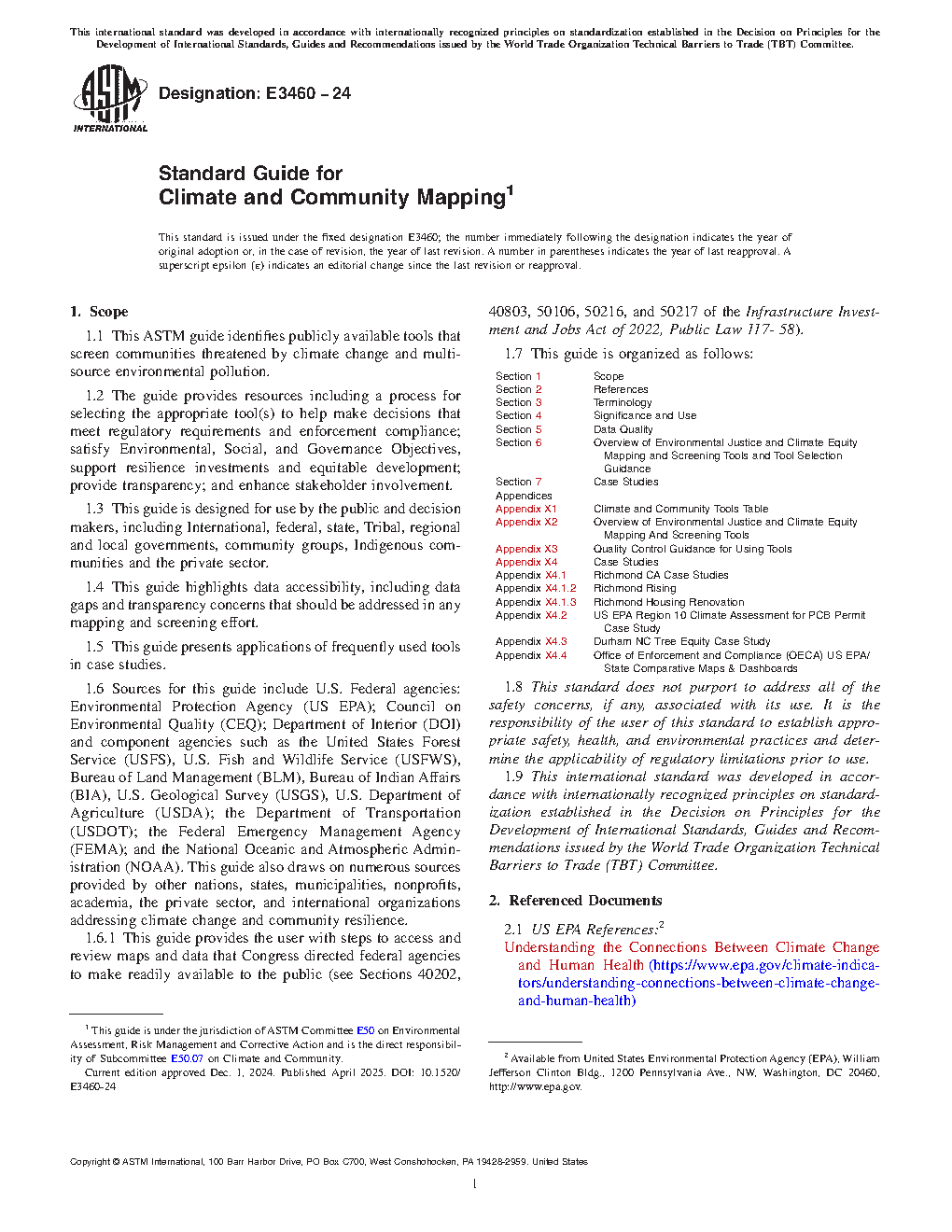 1.1 This ASTM guide identifies publicly available tools that screen communities threatened by climate change and multi-source environmental pollution.